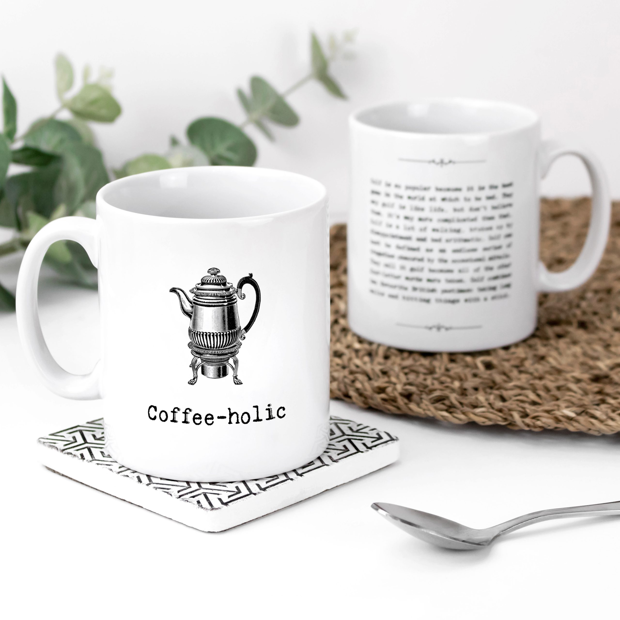 For coffee addicts, there’s nothing more pleasant than the aroma of a fresh brew. Here’s the perfect mug to make them smile. A great gift for your coffee addict friends. Featuring the cheeky phrase ‘Coffeeholic’ and a charming vintage illustration of a percolator. On the reverse, you’ll find lots of funny quotes about drinking coffee. Hand-finished in the UK ceramic mug size: 10oz