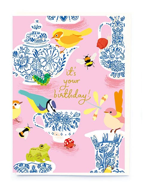 Tea Time, ‘It’s your birthday’ gold foil message. Blank inside and supplied with an off white envelope. Designed and printed in the UK