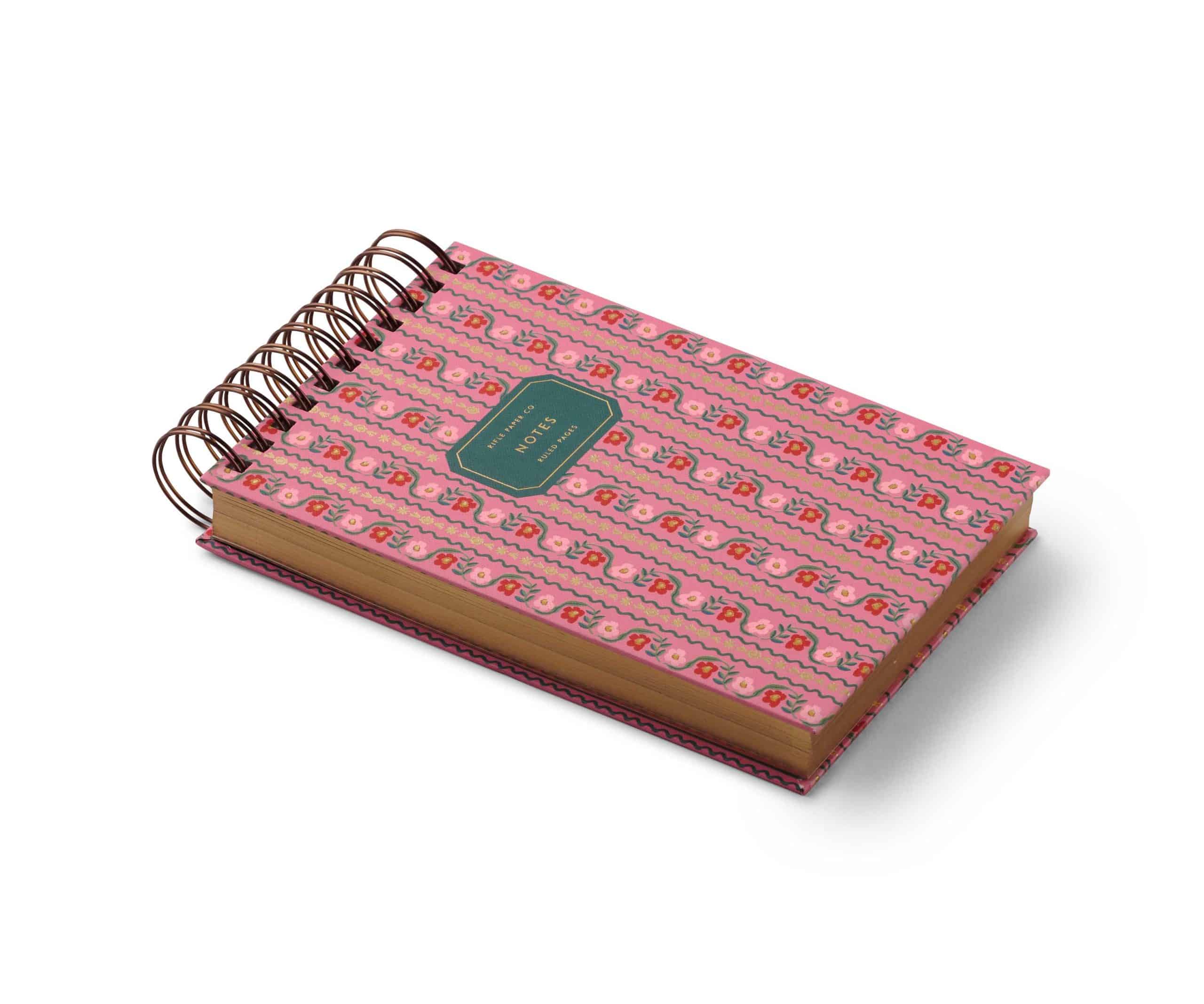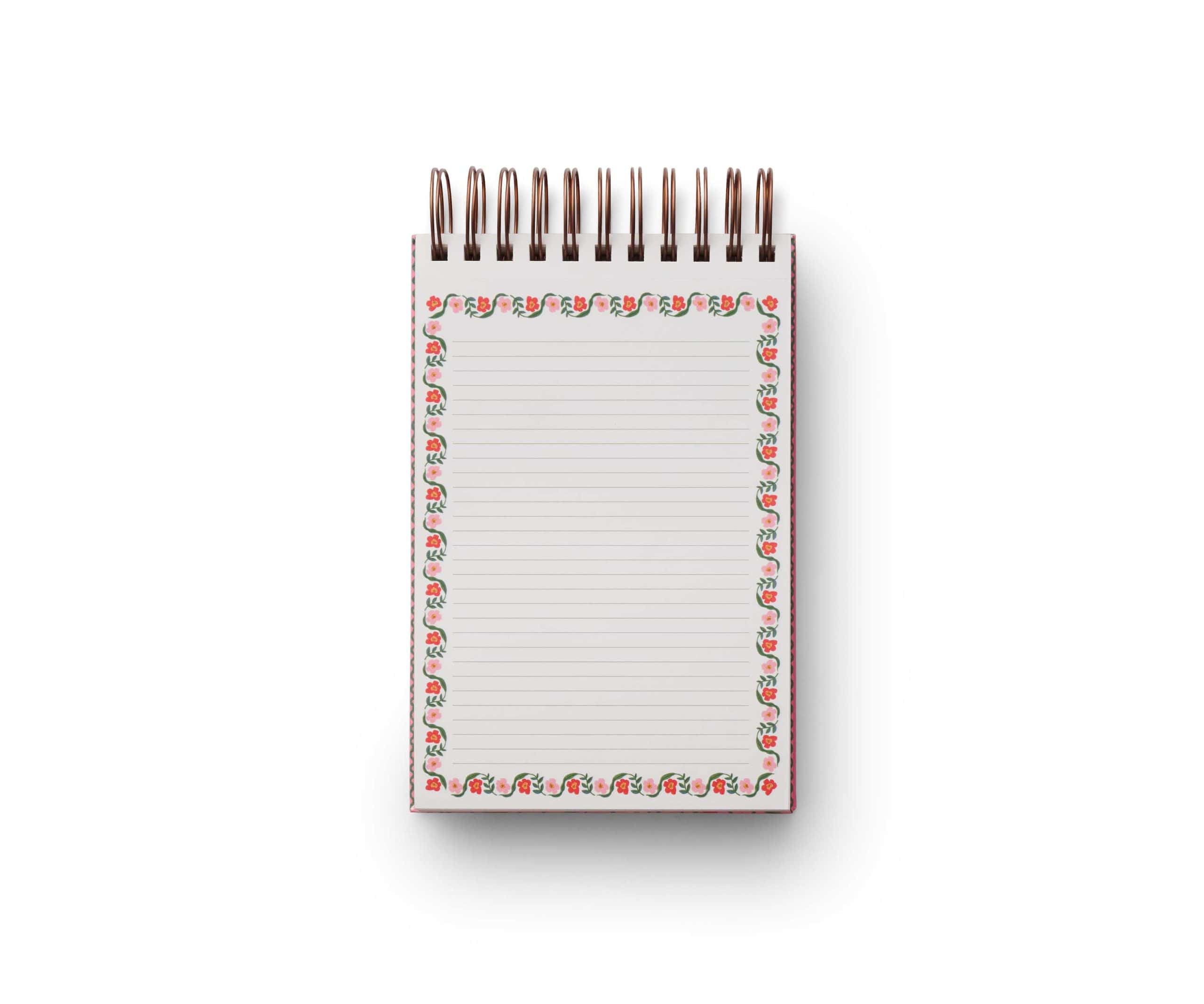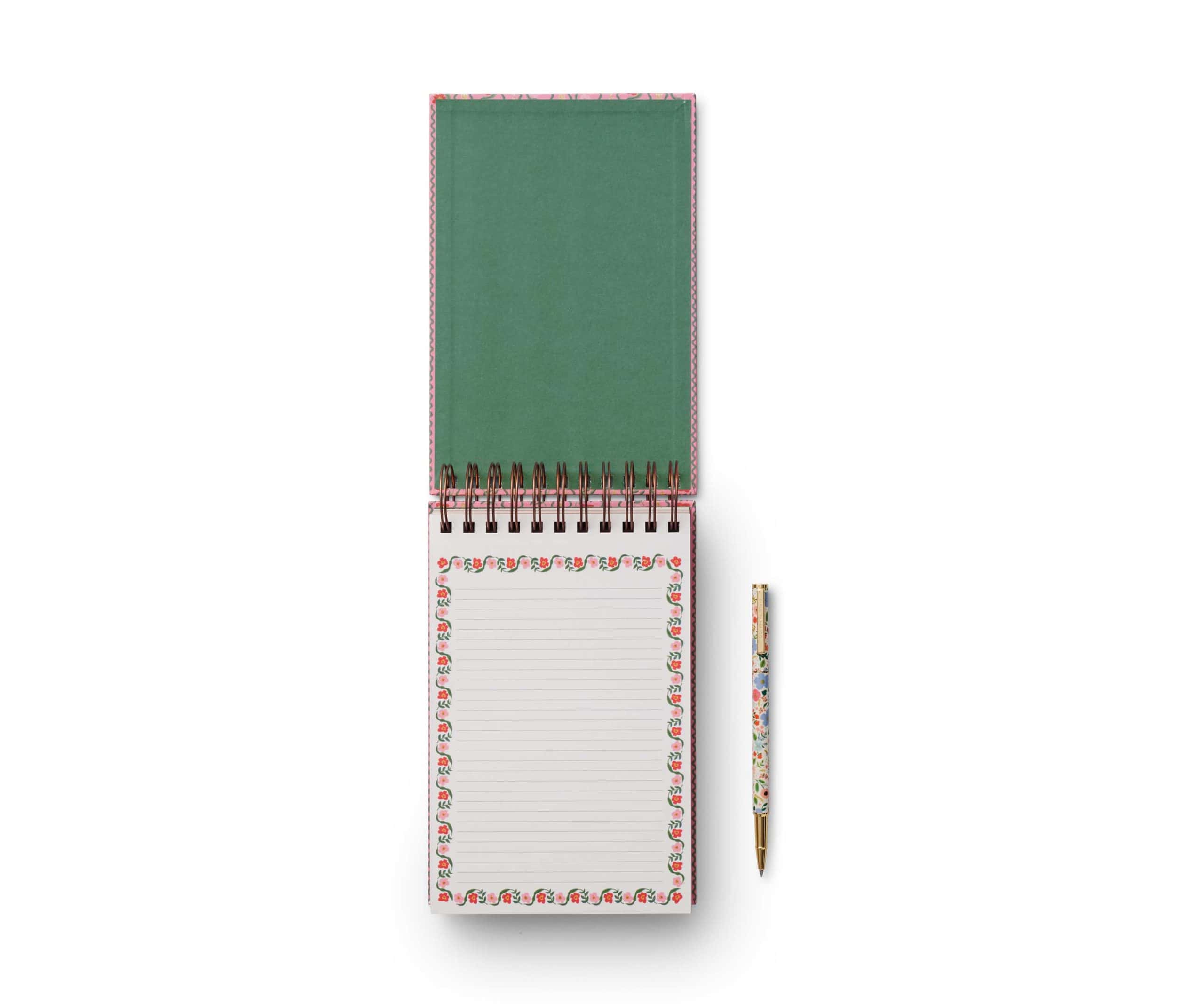 A desktop favorite. This extra-thick notepad is designed to keep closeby, perfect for jotting notes and making lists. The hardcover notepad features a chunky, double-top spiral and 200 lined pages with a gold foil edge.