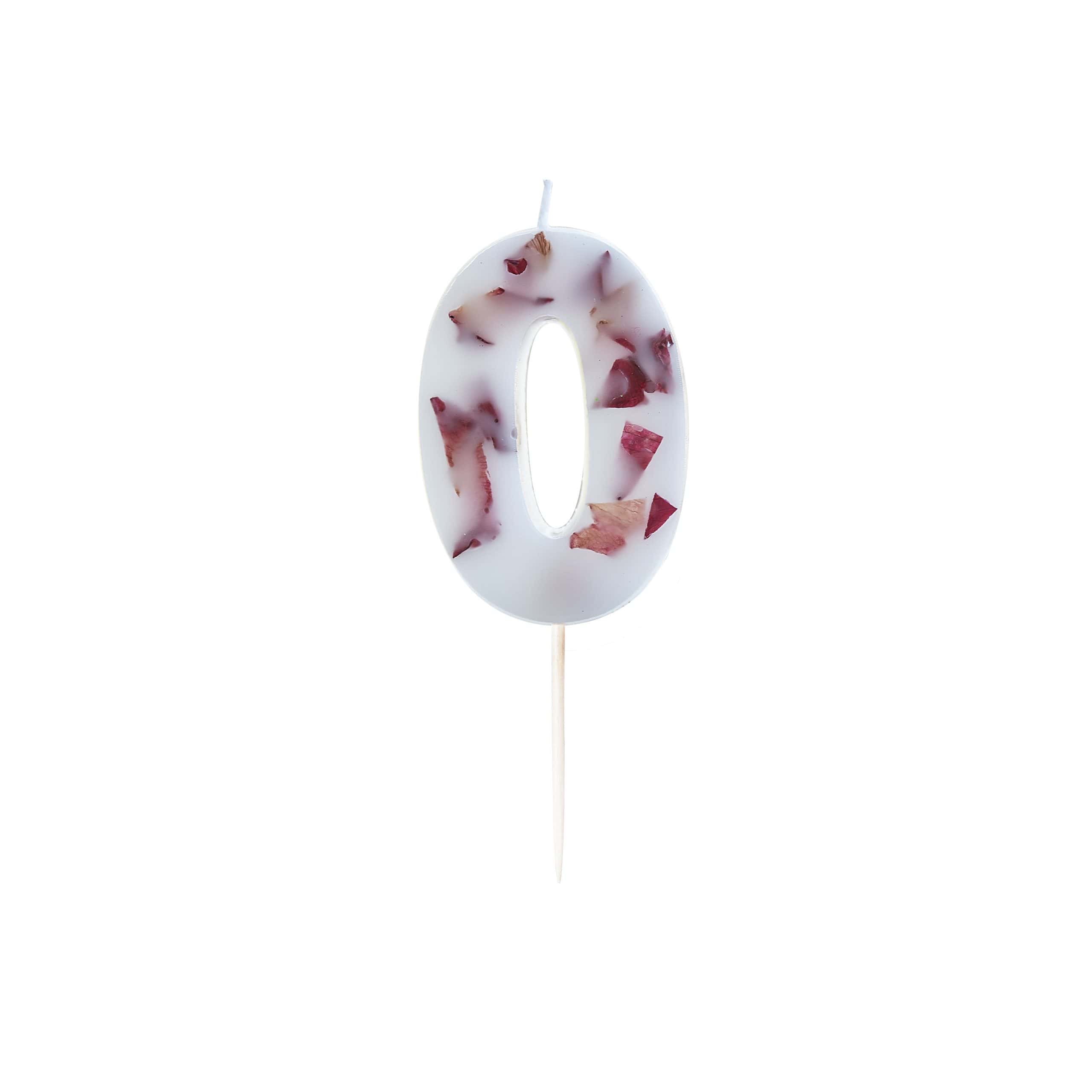 1 x Number 0 Flower Candle that measures 3.5″ (H) x 1.6″ (W)