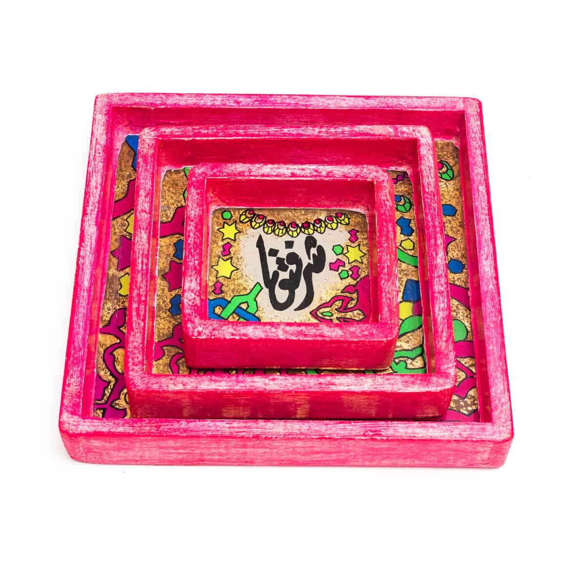 Largest tray: 20 x 20.5 cm; medium tray: 15.5 x 15 cm; Small tray 10 x 10.5 cm