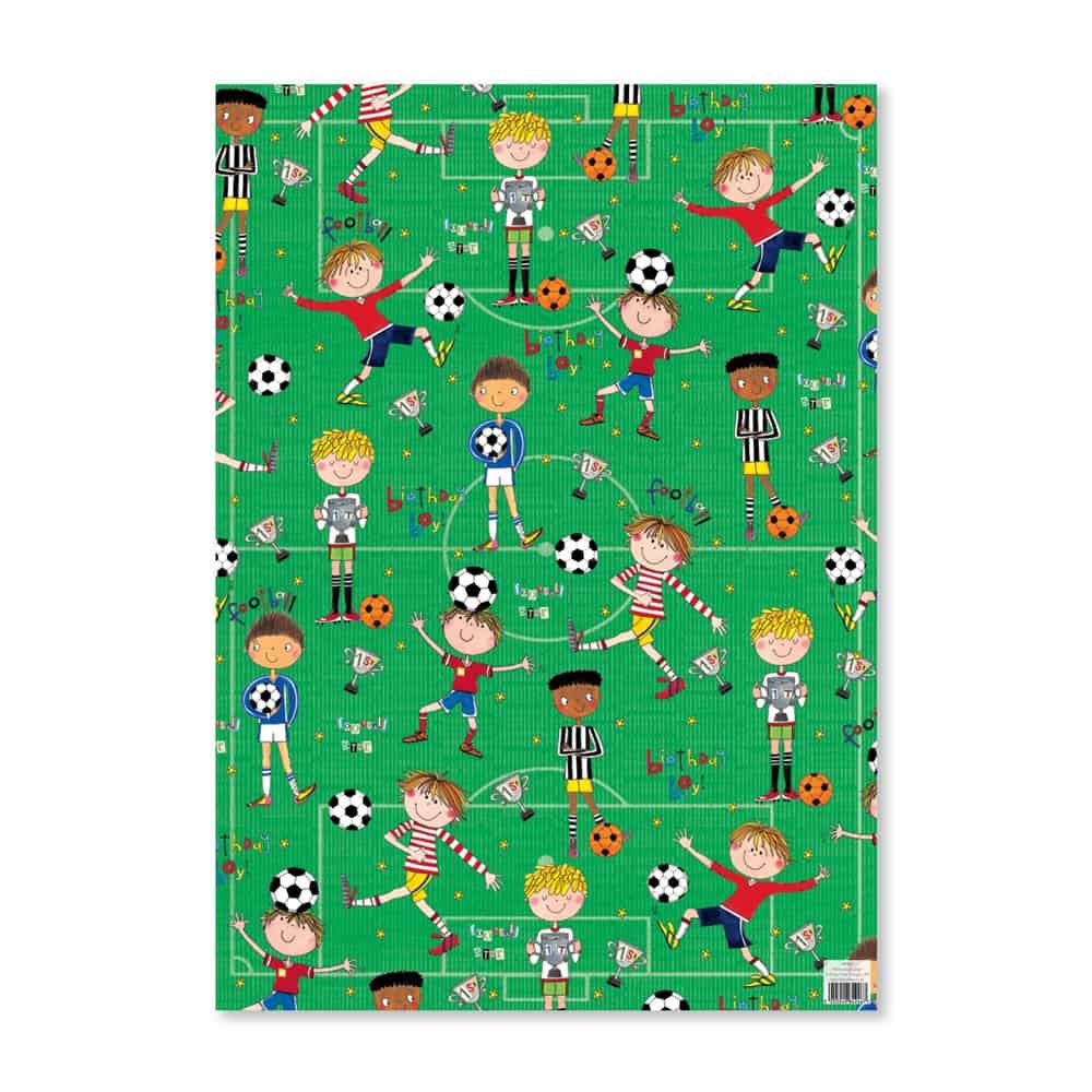 This luxuriously thick wrapping paper features a soccer themed pattern for sport fans. One sheet, 115gsm paper. Designed and printed in Nottingham, United Kingdom on FSC paper. 50 x 70 cm