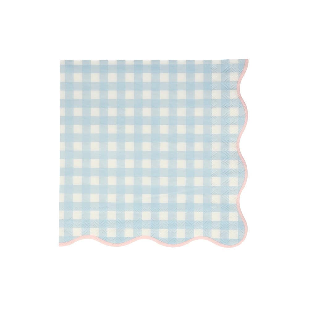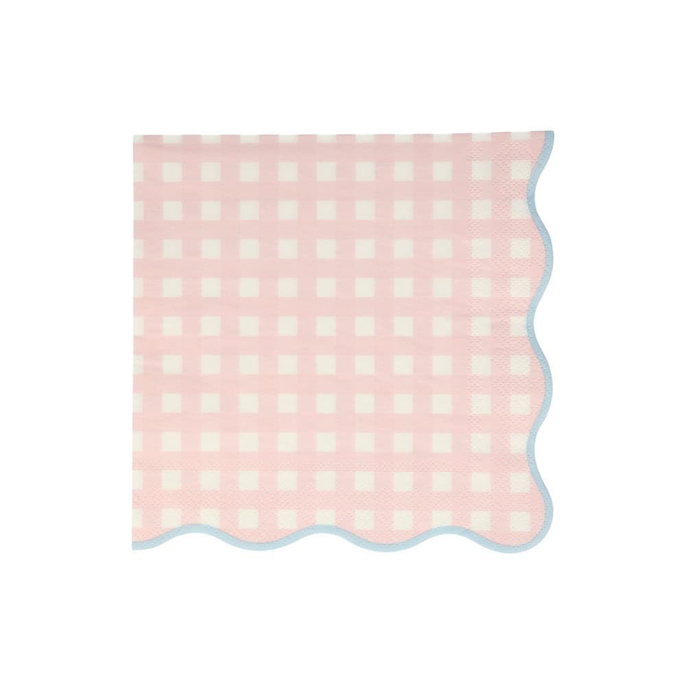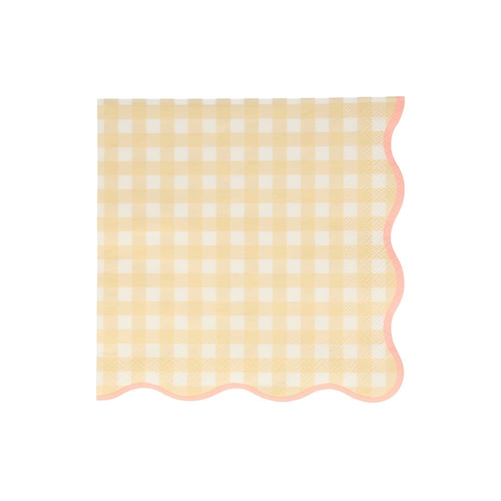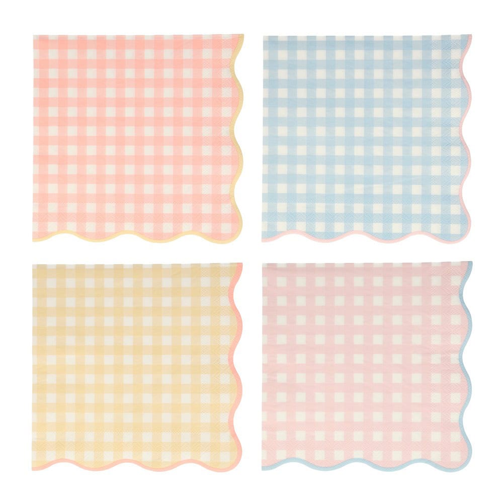 These gorgeous gingham napkins will look sensational on your party table. They are perfect for any celebration where you want a springtime splash of color. The napkins come in 4 gingham print colors – coral, blue, yellow and pink. Scalloped edges, with a coordinating colored border, give a delightful effect. They are crafted from 3-ply paper, so are practical as well as decorative. Made from sustainable FSC paper. Pack of 20 in 4 colors.