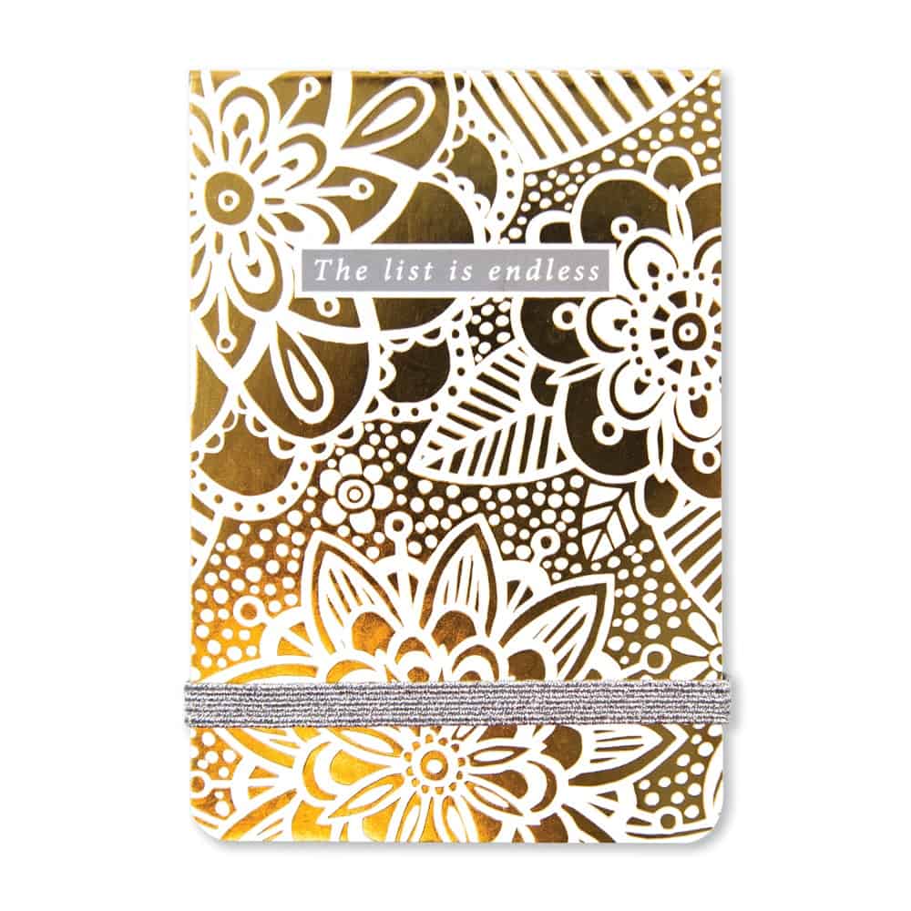 This stylish A7 notepad is small and chunky! With 160 lined pages inside, elastic closer and foiled covers, they make perfect eye-catching additions to any self-respecting handbag!