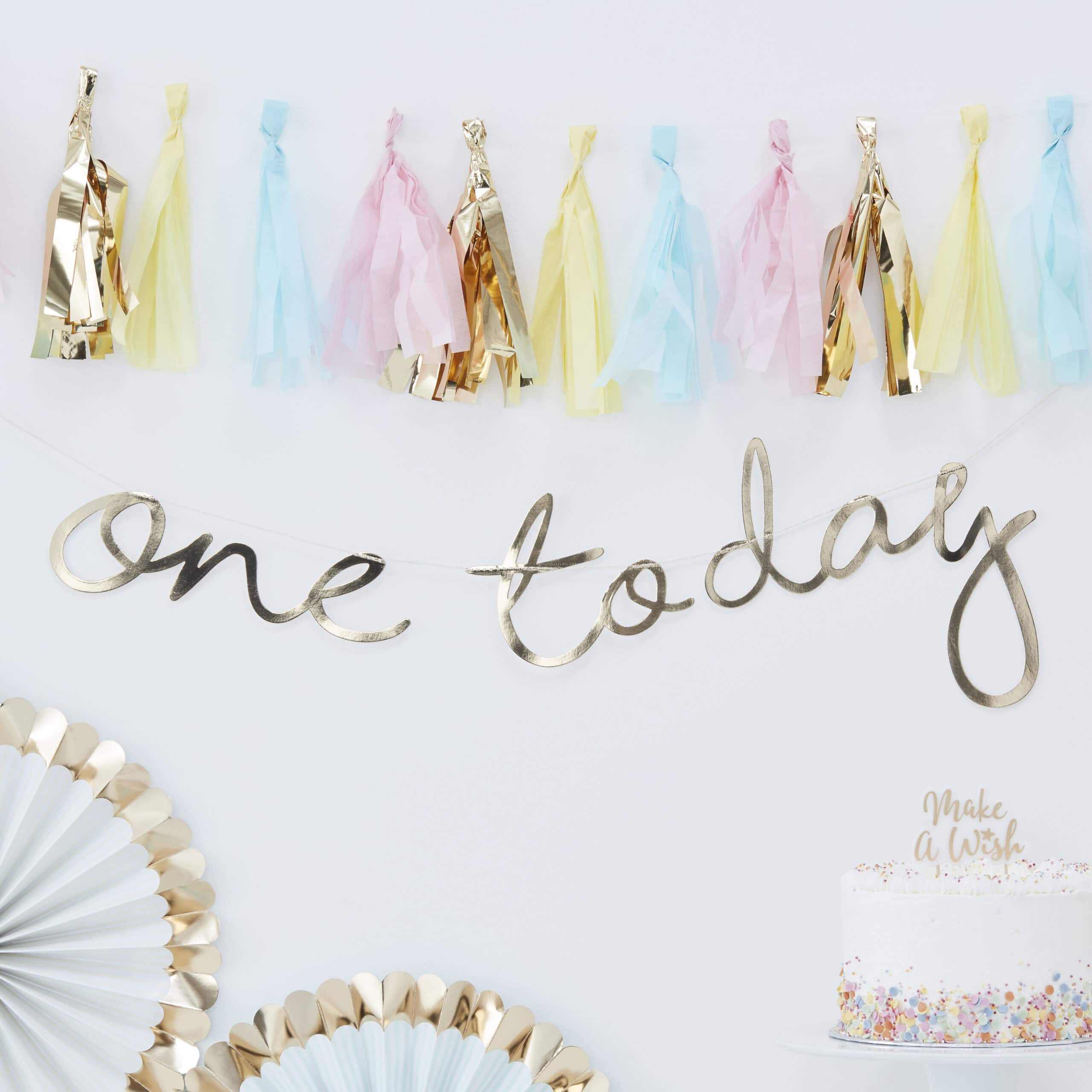 Celebrate with this cute first birthday gold foiled banner. Each pack includes one backdrop measuring 1.5m (L) and 25cm (H).