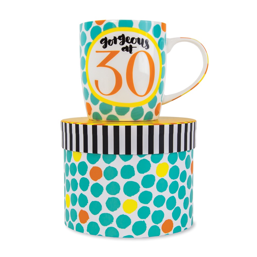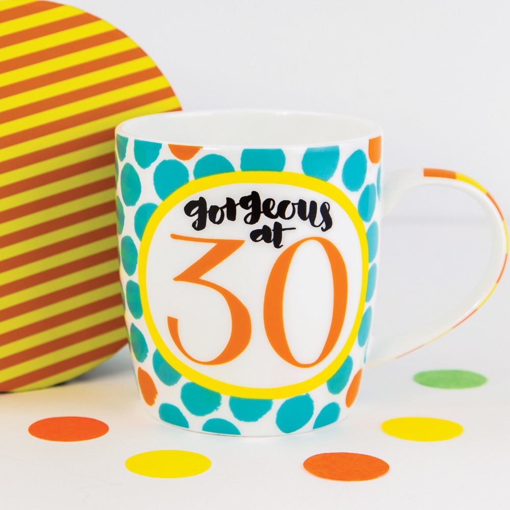 Age 30. A stunning fine bone china mug. Comes complete with a premium quality hat style presentation box. Makes the perfect gift for a 30th Birthday. Care: Dishwasher and microwave safe