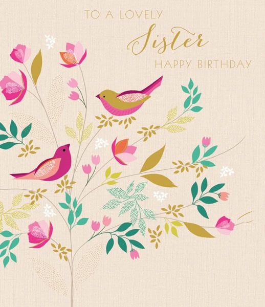 Happy Birthday Sister Card from Sara Miller London. Add a touch of opulence to their special day with a luxury birthday card from Sara Miller London. Embellished with gold foil accents and embossed detailing for an added touch of opulence, this Sara Miller greeting card is certain to make them smile.
