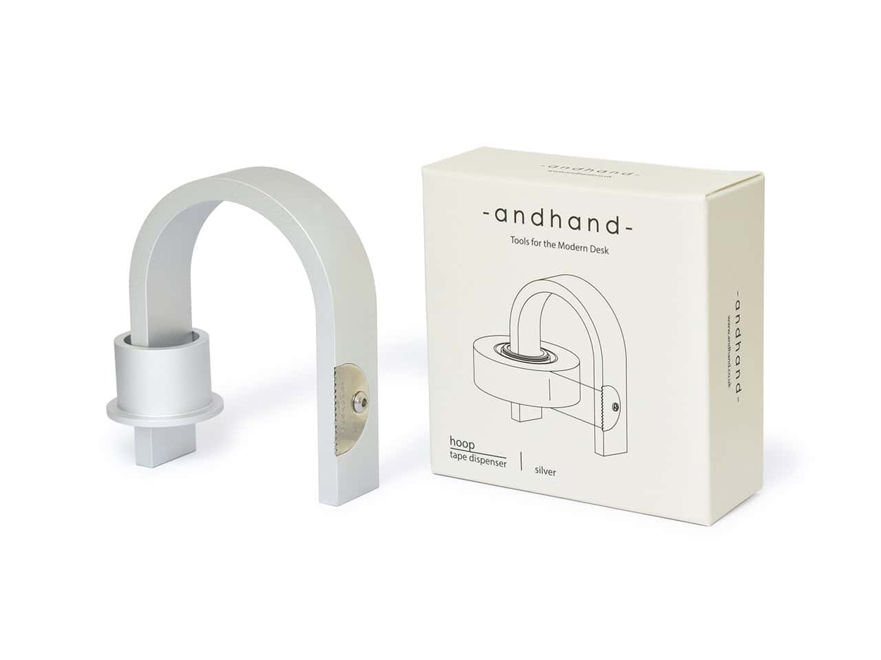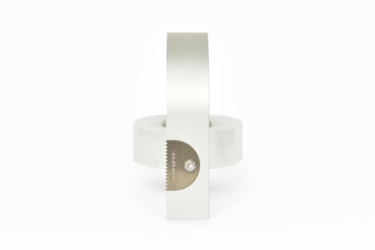 The all metal construction Hoop tape dispenser takes a simple unassuming form that brings elegance to any desktop space whilst also being an extremely durable and high performing piece of kit. The combination of precision machined aluminium and custom made brass blade ensure a clean cut through the tape.