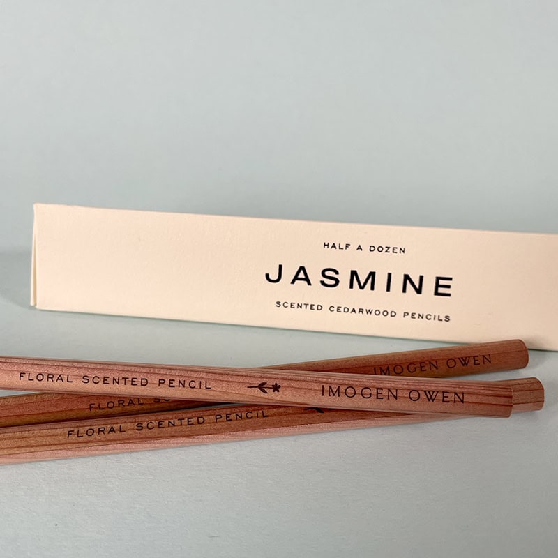 A set of 6 jasmine-scented cedarwood pencils created by a 100 year old pencil factory. Fragranced with scents from the garden.