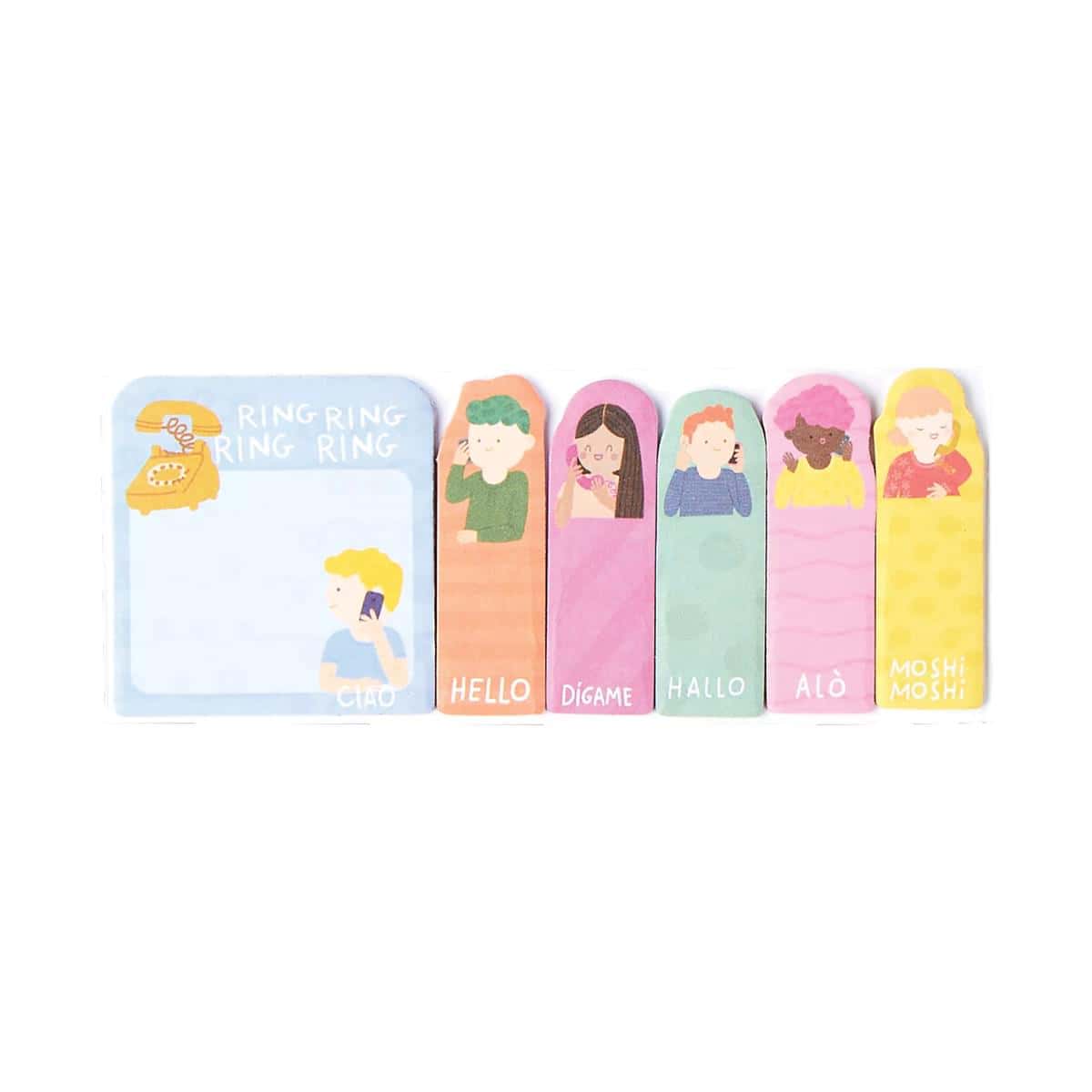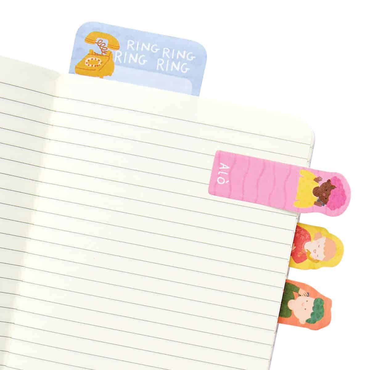 - Sticky note tabs from Note Pals featuring a group of friends on the phone