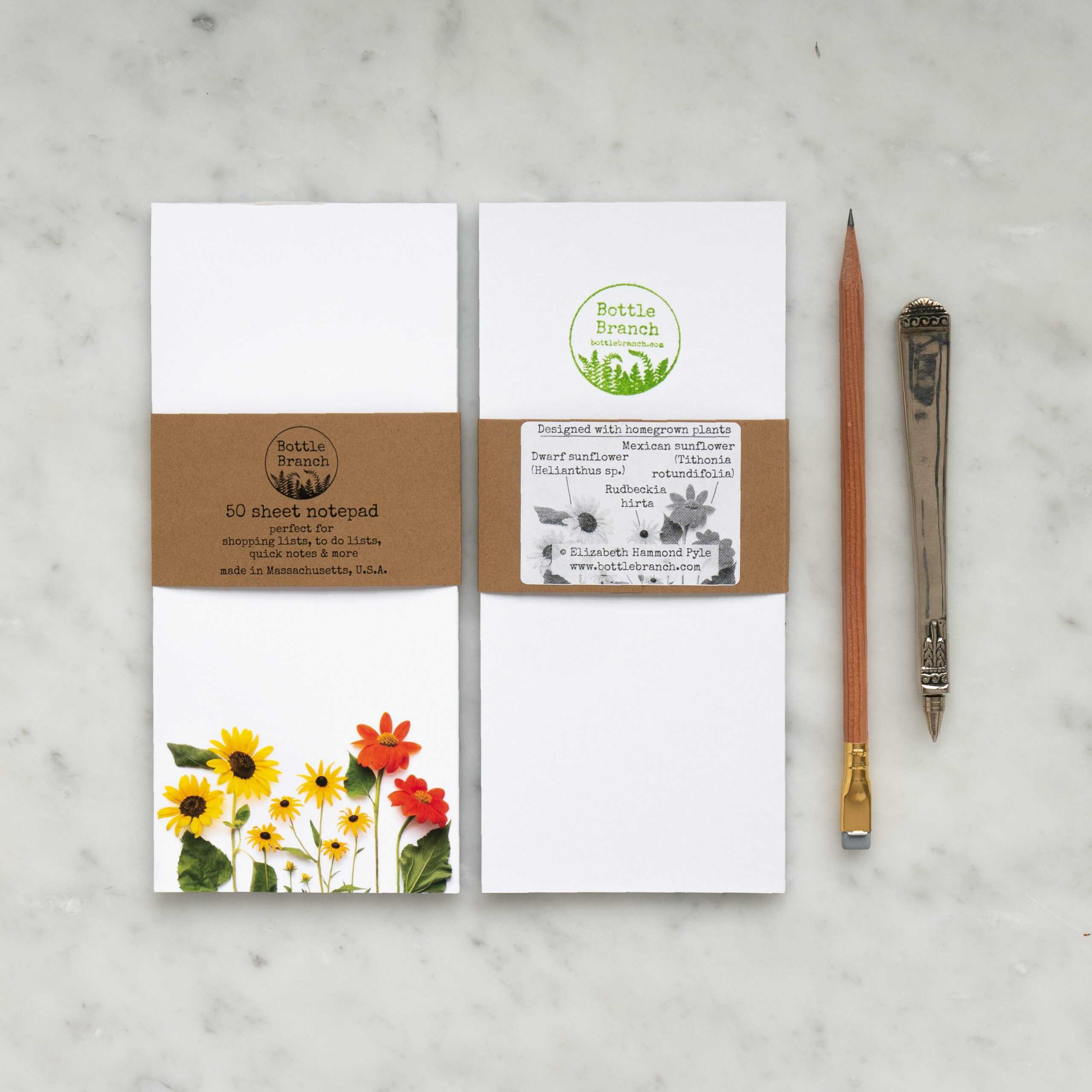 Note pad featuring beautiful botanical photography. Created from photographs of fresh plant material, designs pop off the paper. 50 sheets, with a diagrammatic label on the reverse showing plant names.