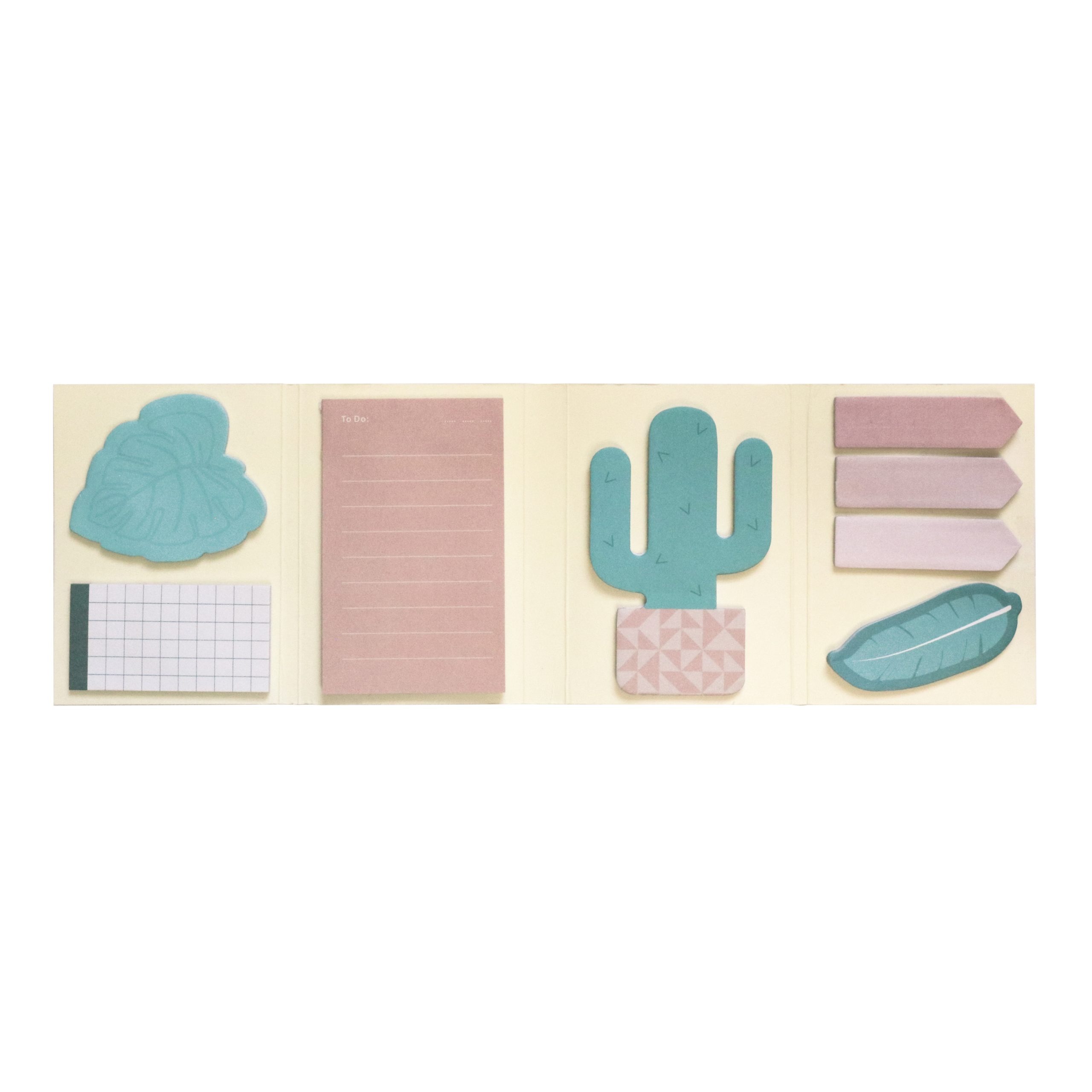 Botanical sticky notes with assorted sizes and shapes, with list section and page markers.