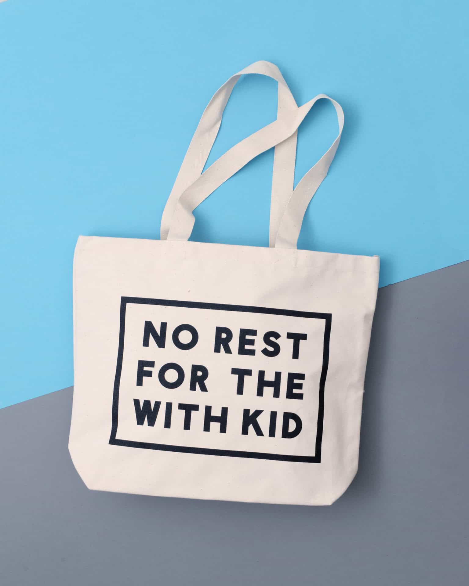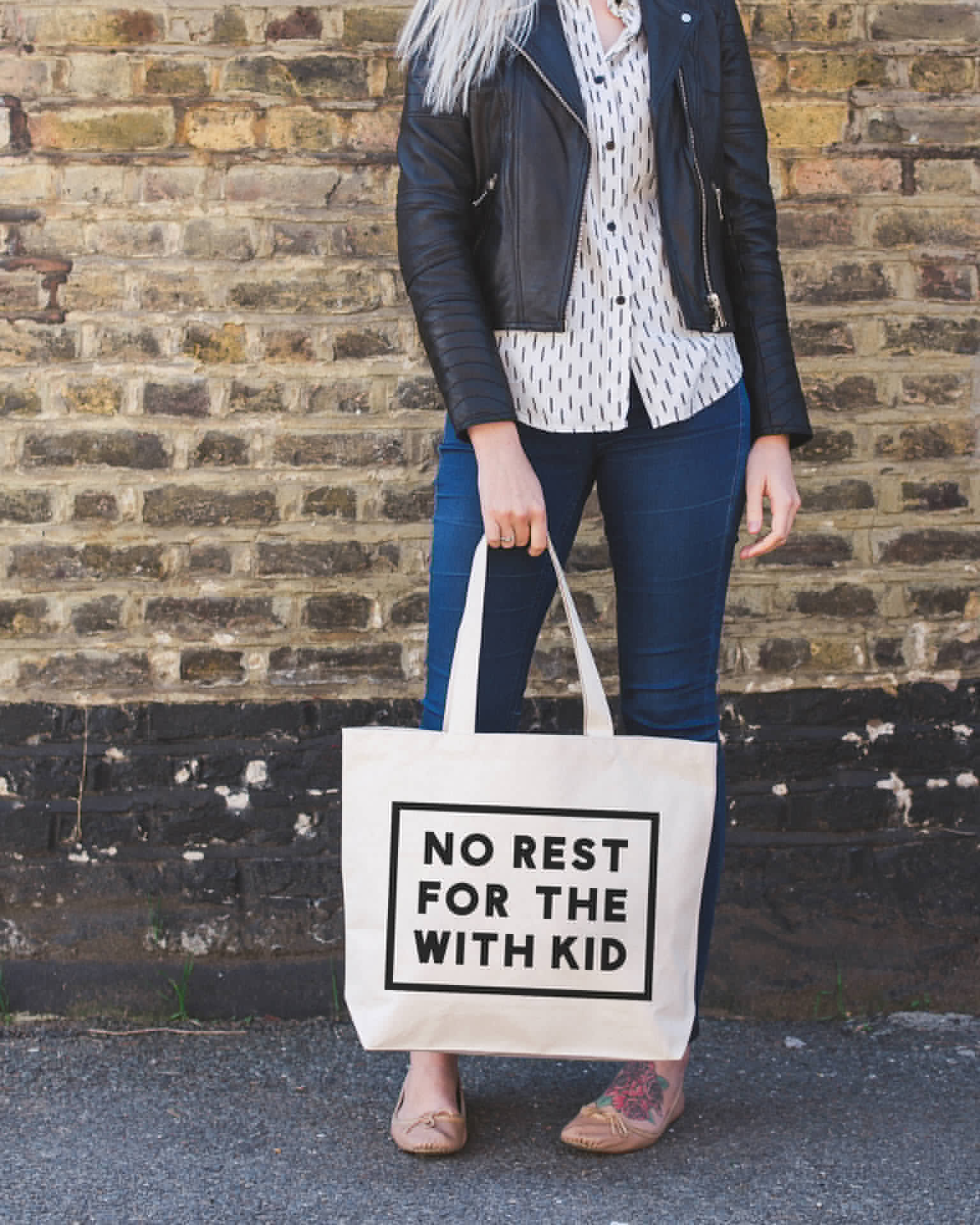 There’s no rest for the wicked so they say, but there’s definitely no rest for the WITH KID!Our big canvas bags make the perfect spacious totes for your daily essentials and much more. Great for the gym, beach and your dash to the shop. They also make a great nappy bag! Suitable for carrying by hand or over the shoulder, there is also a handy internal pocket, perfect for your bits and bobs.The hand illustrated design has been printed in black on sturdy natural canvas.Heavy weight natural canvas. Handy internal pocket, Deep flat base, Mid-length handles. Made in the UK