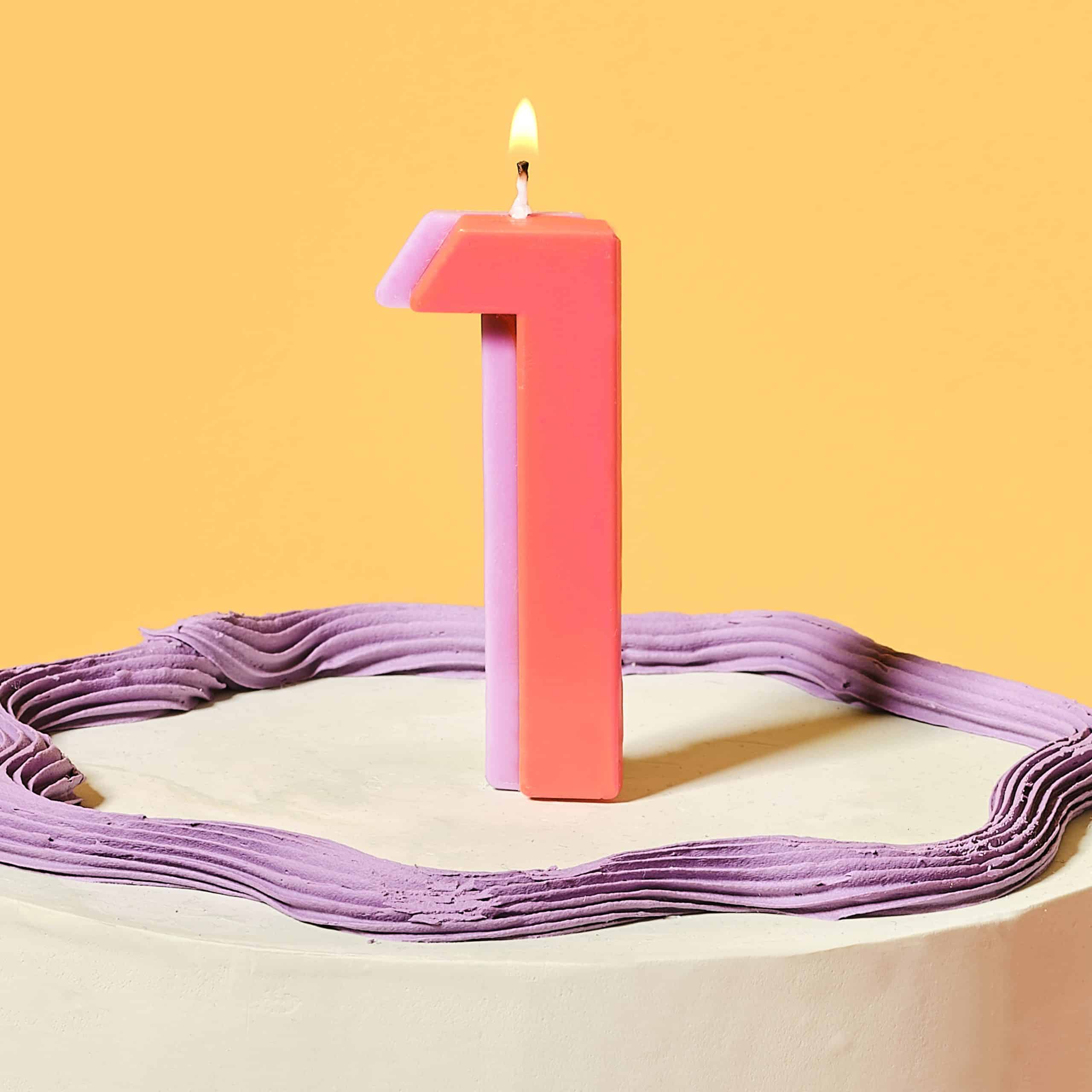 Orange and purple number 1 candle