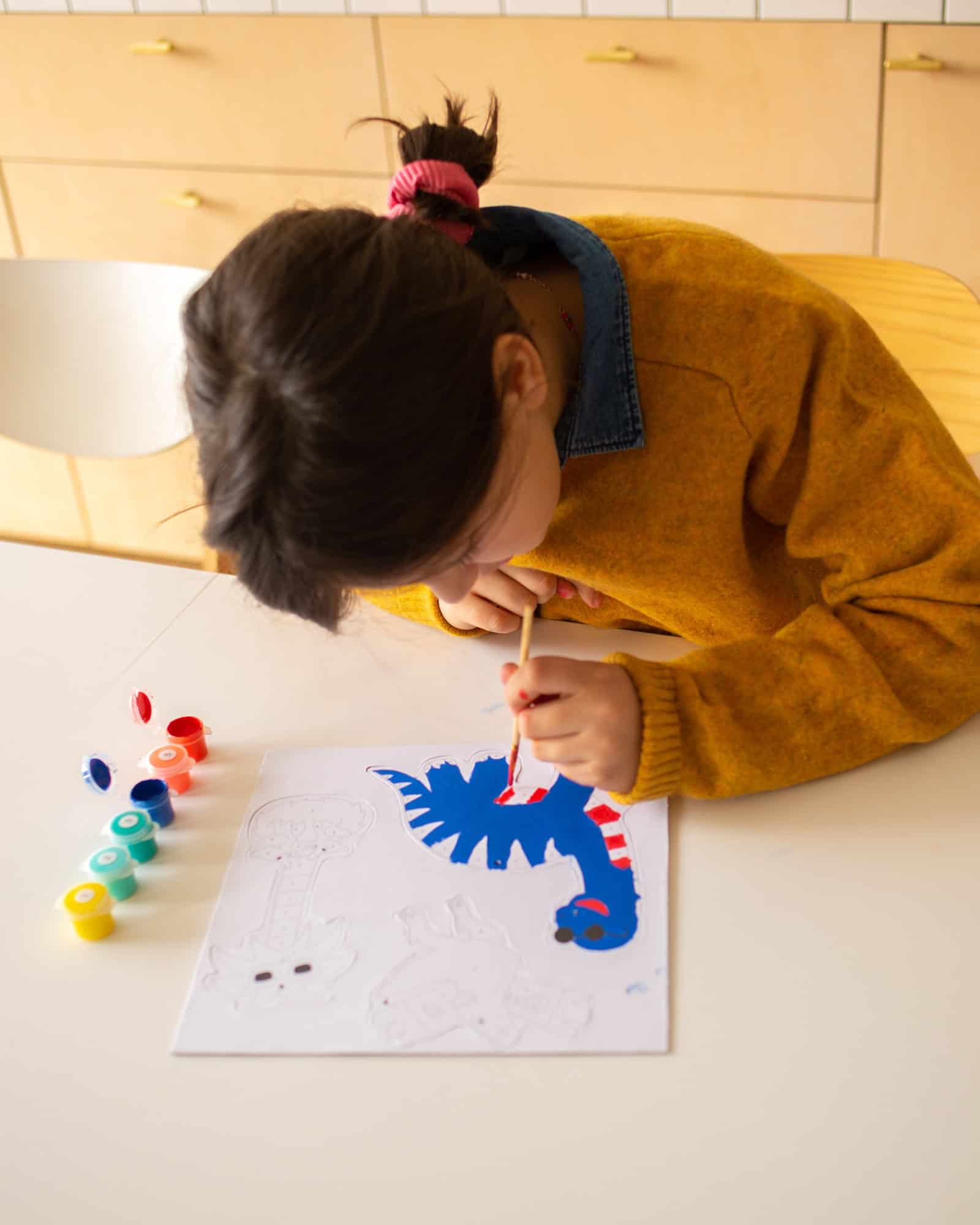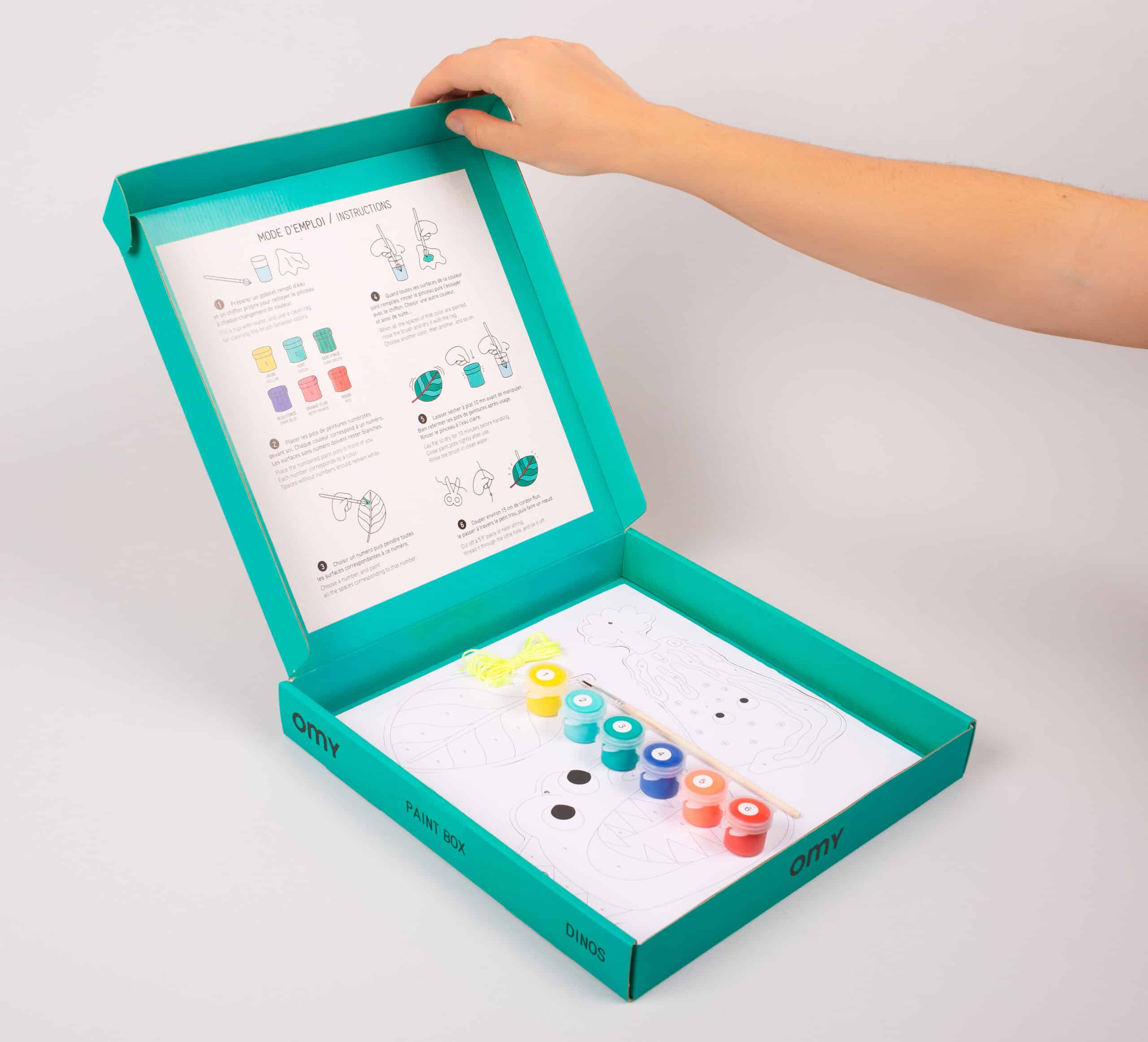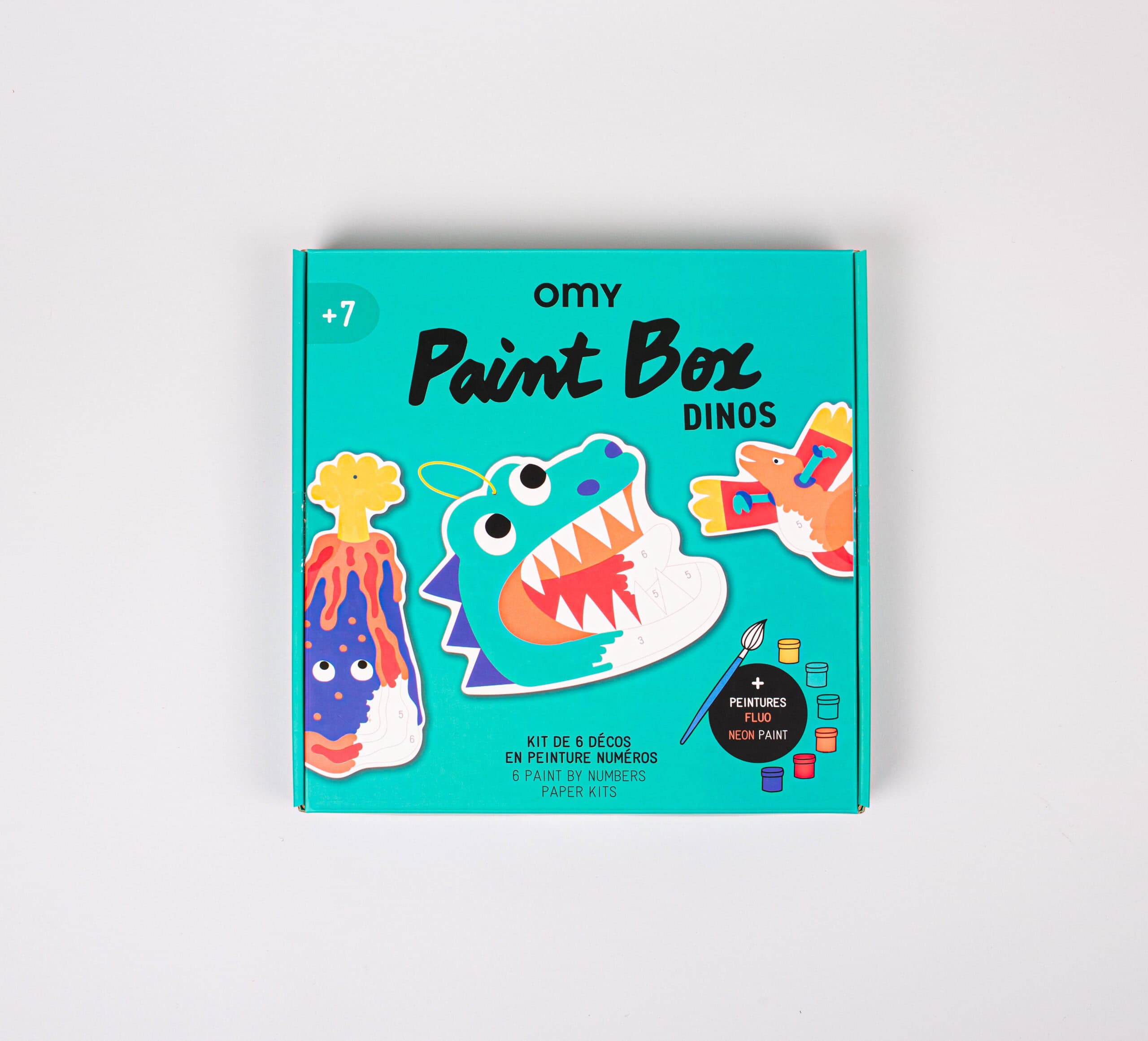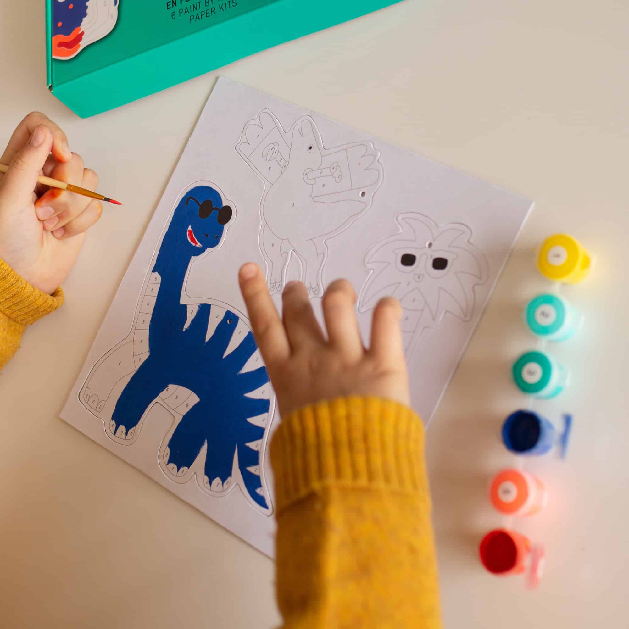 Play, paint and decorate! Dinosaurs and more in your own paint box! Everything is included in the kit: 1 paint brush, 6 acrylic paint containers, includes 2 neon colors, 6 decorative pendants and 1