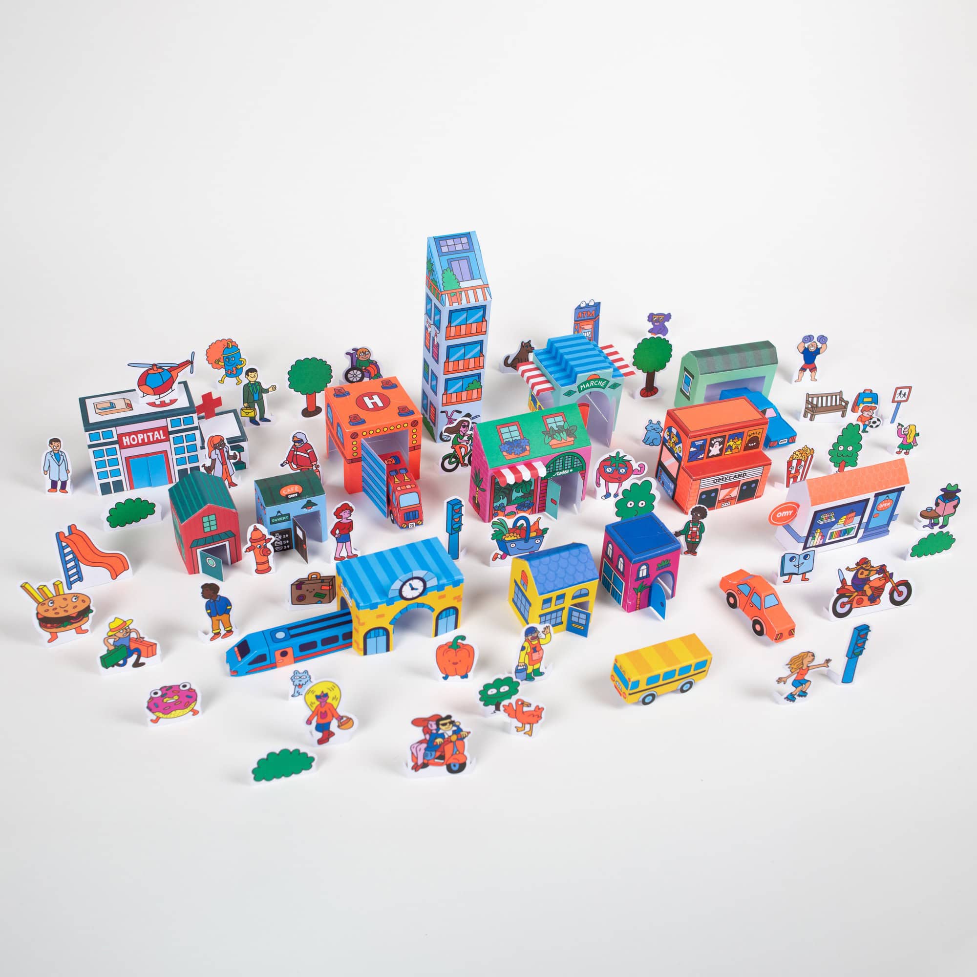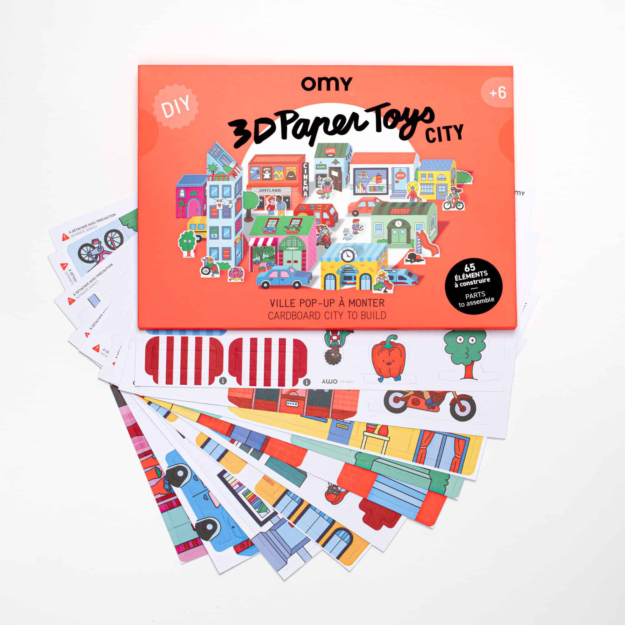POP up City to assemble! Inside this pack, 13 small houses, 5 vehicles and many decorative elements in cardboard to assemble. Easy to build, pop up the pre-cut vehicles, fold, glue together the parts with black dots. Once the city is assembled, let your imagination go wild. 6+
