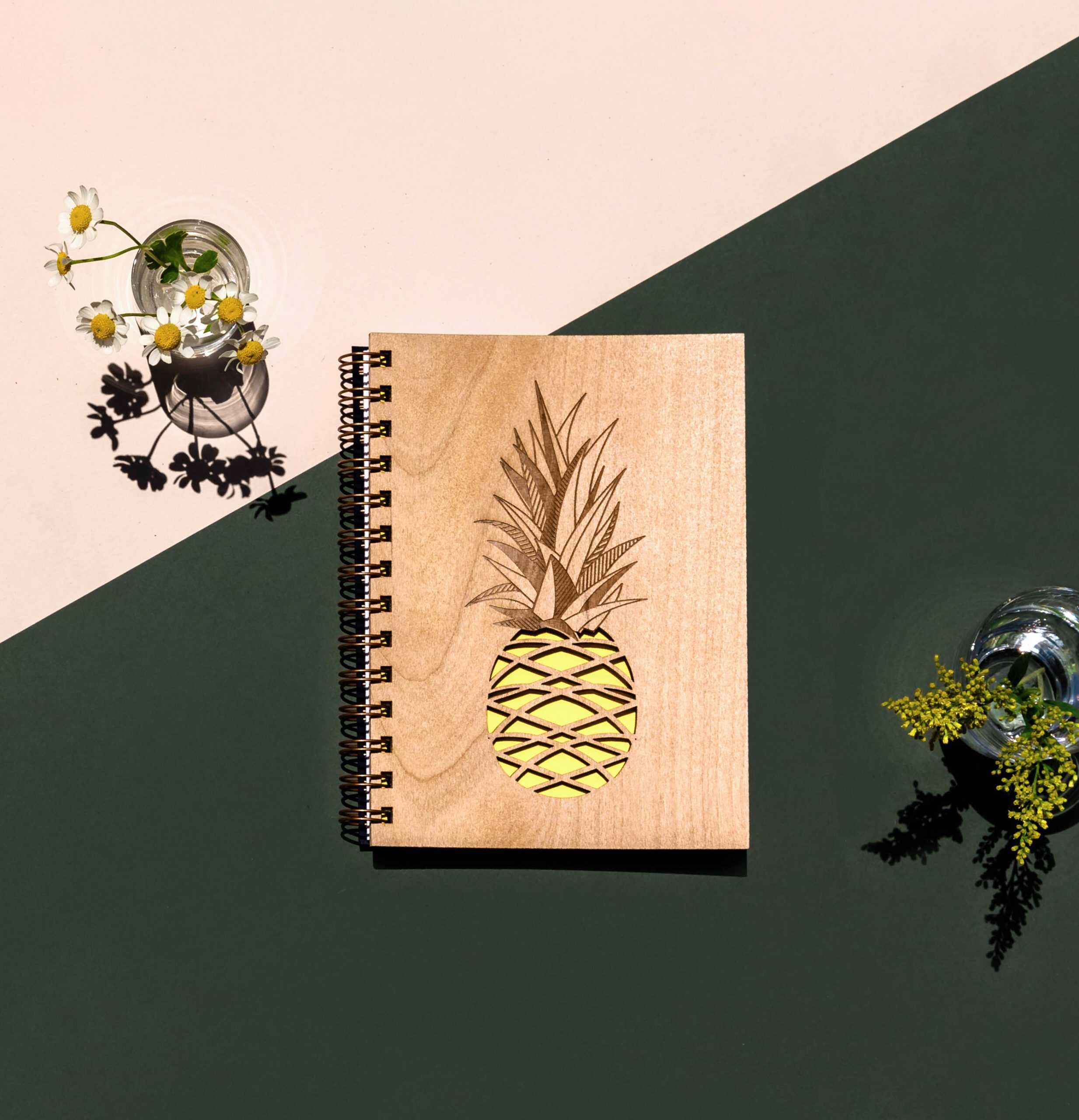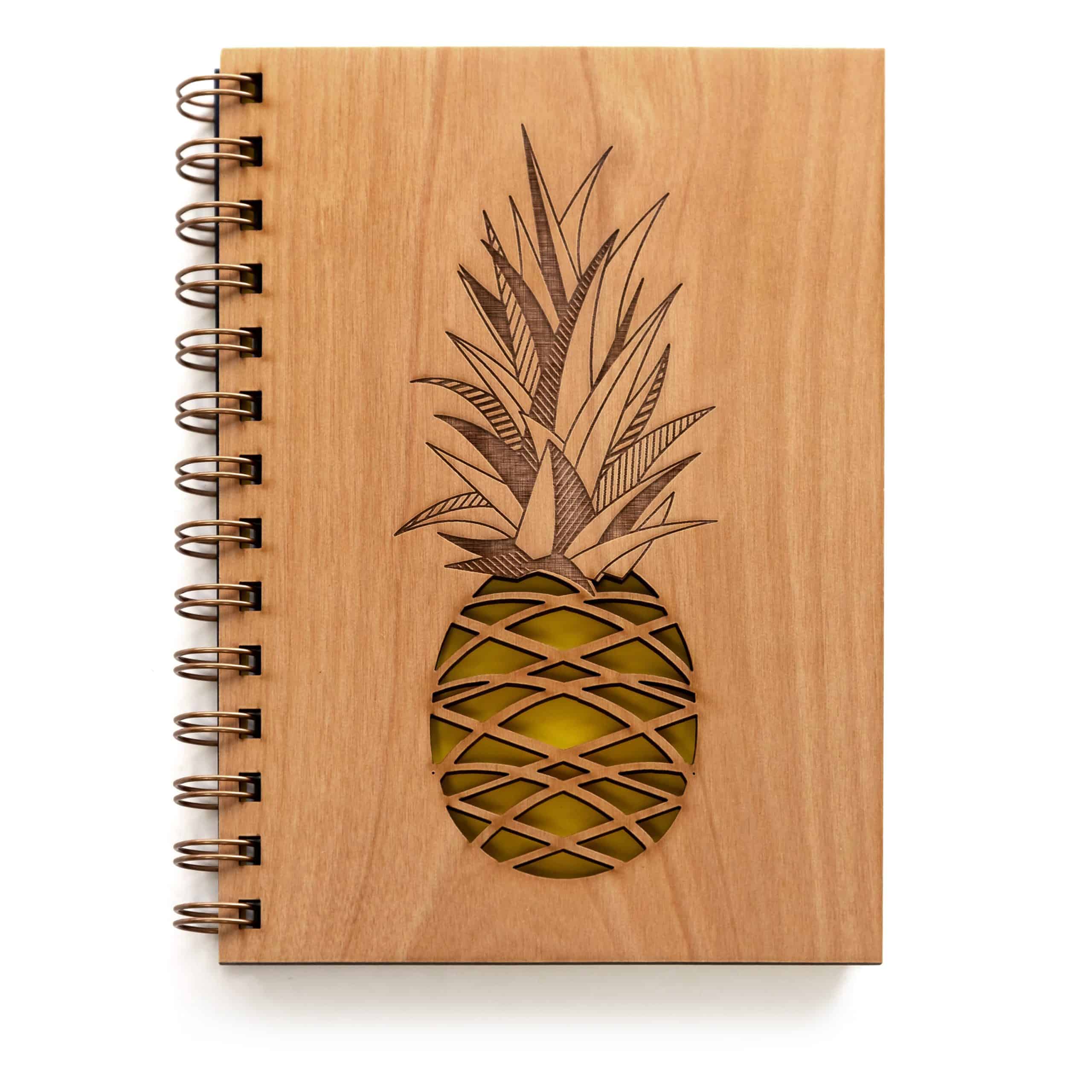 This Journal with fruit-themed cover will make you feel tropical wherever you take your notes, to-do lists, and secrets. This handmade journal elevates gifting and inspires self-expression in poetry and verse. Each journal is laser cut and hand-bind and is made from certified sustainable wood in the United States.