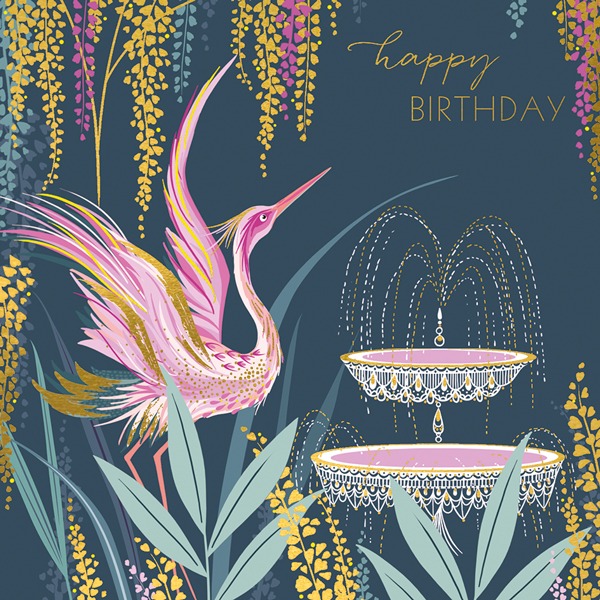 Gold foil with multi level emboss, printed on 280 gsm textured board. Blank inside, comes with cream linen emboss envelope