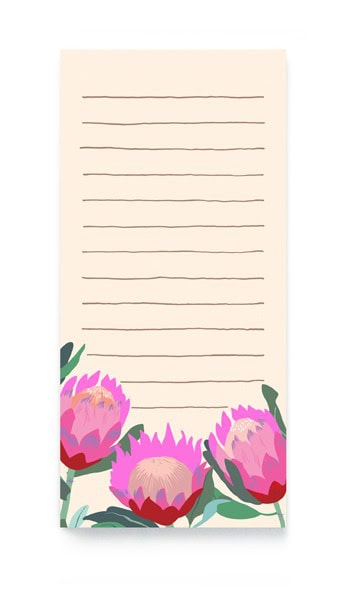 Protea magnetic shopping list. 60 tear off sheets. Make a list and stay organised. Supplied in a gold foiled headed hanging bag. Designed and printed in the UK.