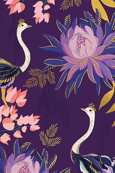 Floral Ostrich Print Notecard Set from Sara Miller London. Fun, flamboyant ostriches against a vibrant floral backdrop, beautifully finished with textured gold foils and embossed details. The cards are blank inside for your own personal message. 10 Cards with envelopes.
