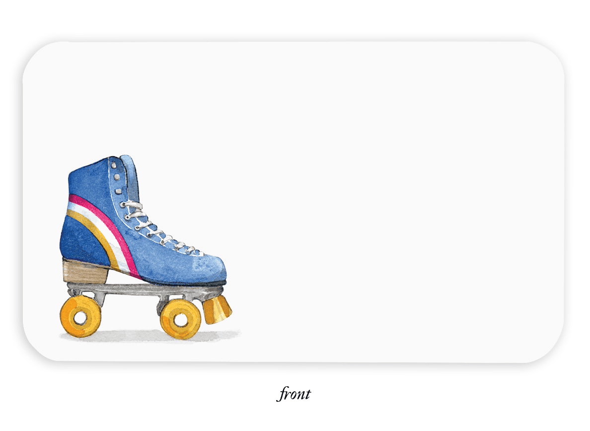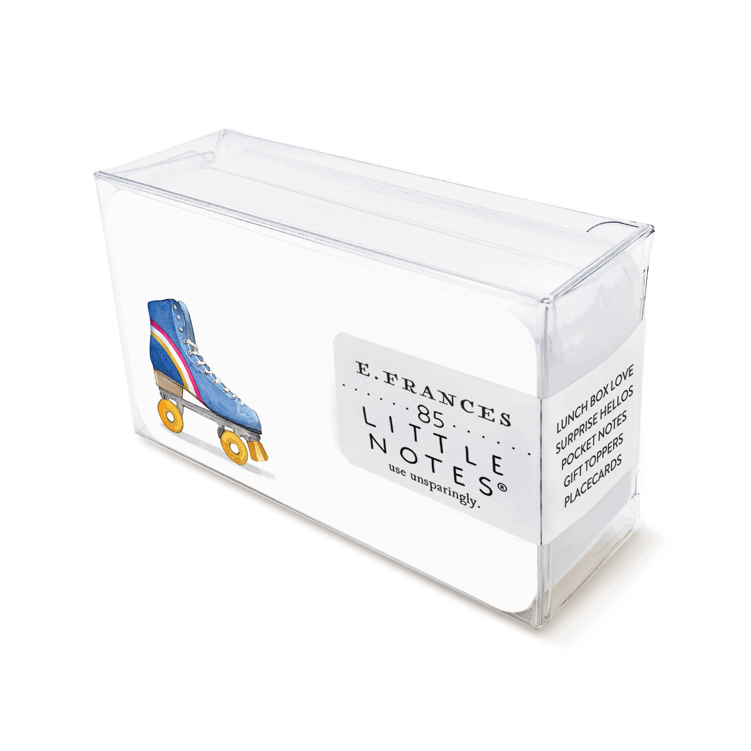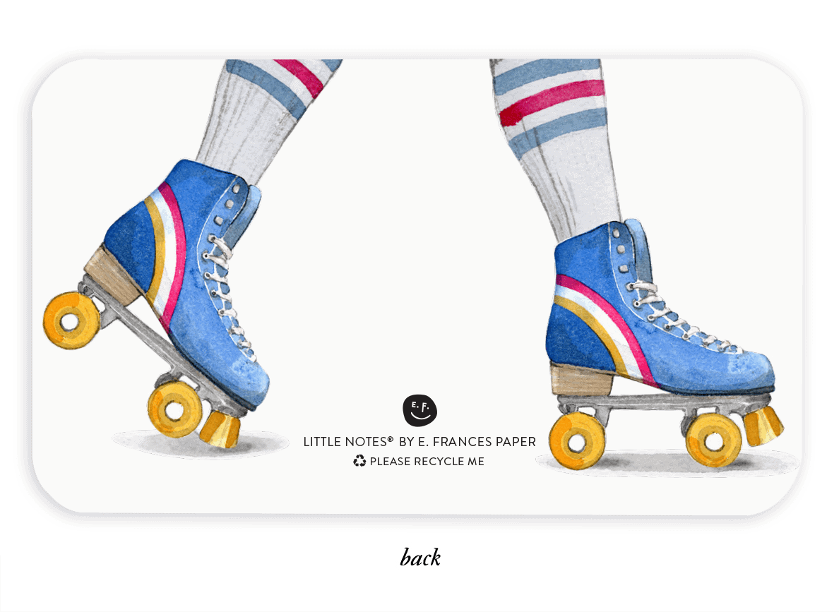 Eighty-five roller derby little note cards cozily boxed together for you to use unsparingly as place cards, surprise notes, lunchbox notes. Reverse has a complementary design.