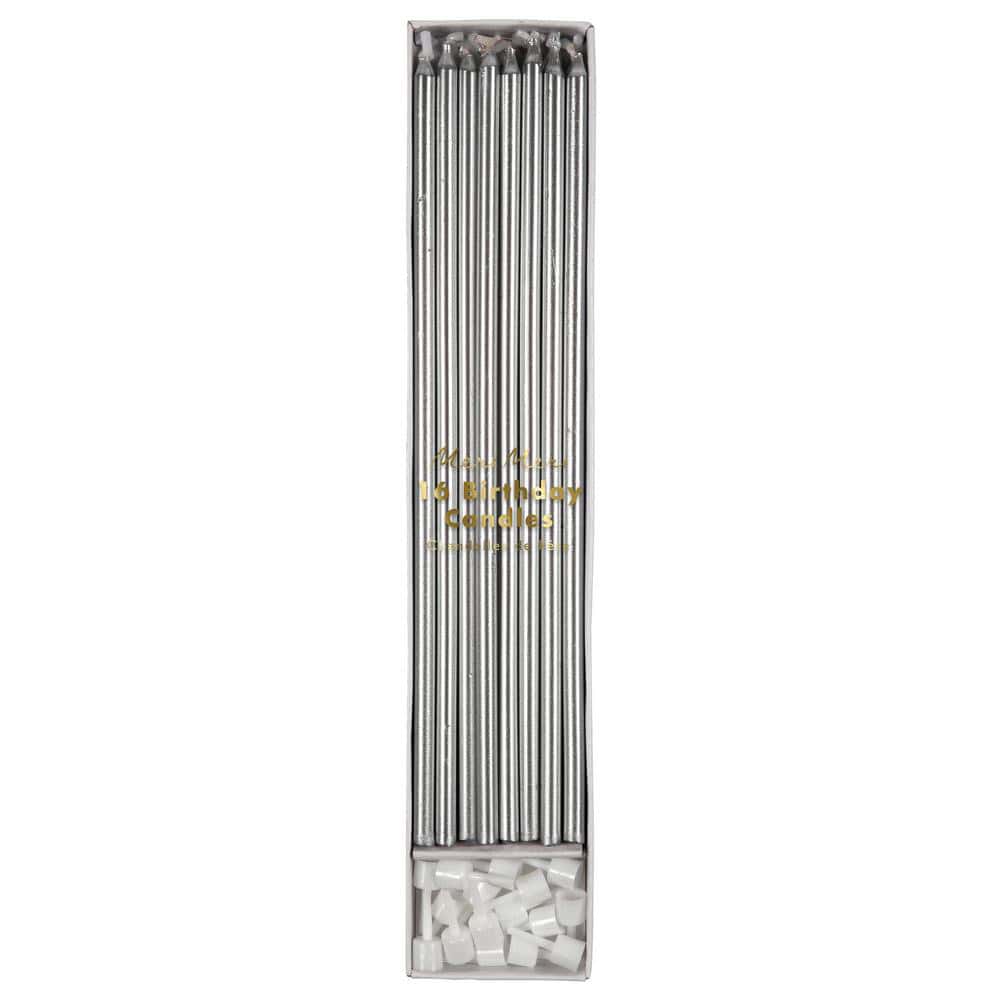 Set of sixteen elegant silver candles.