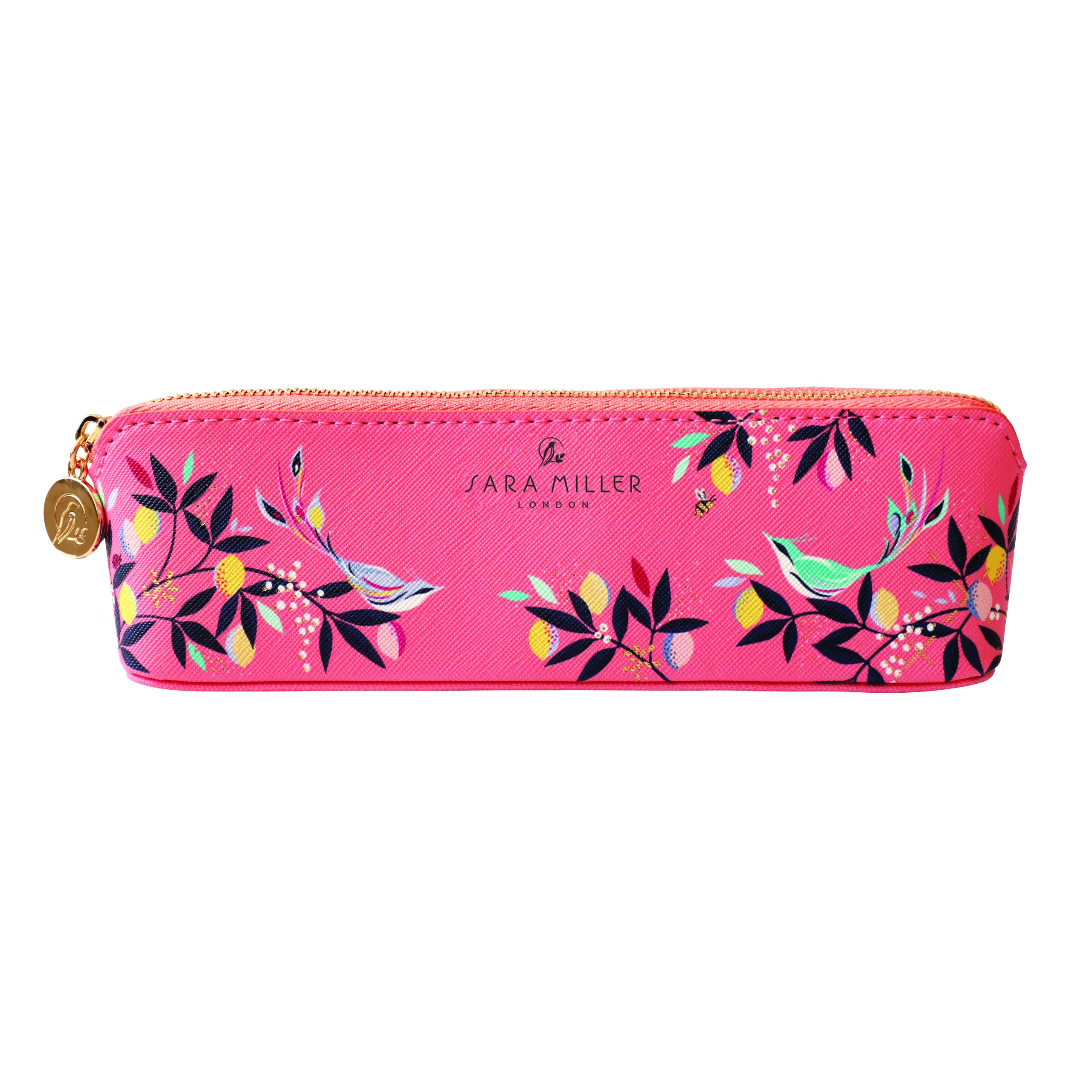 Colorful textured faux leather pencil case with gold foil details and a contrasting navy lining, is a perfect size for all your essential pens and pencils on the go.