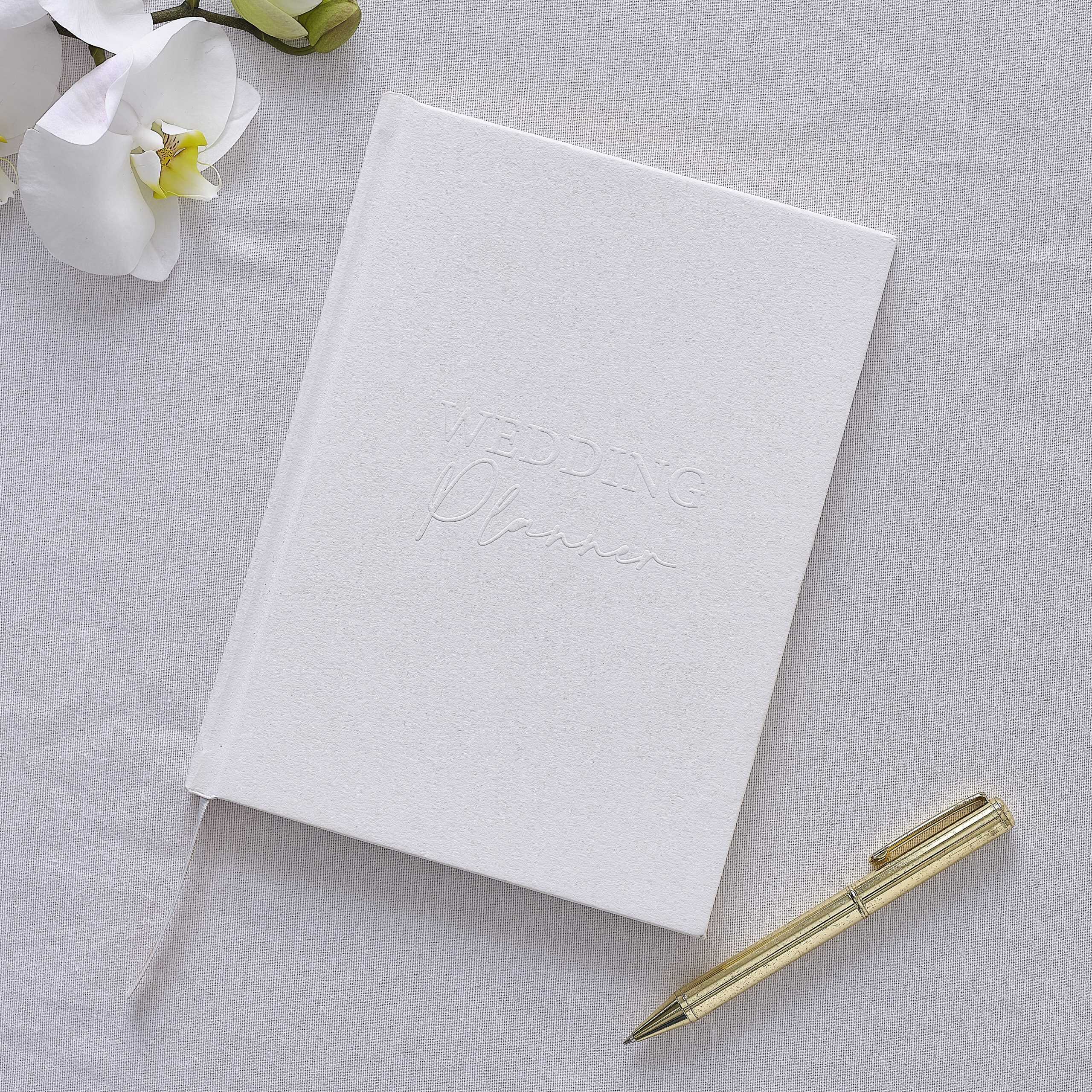 Get prepared for the big day with this white embossed wedding planner. This planner contains everything you need to plan your wedding including checklists, guest lists, notes and to-do lists, so you can plan every last detail. The perfect gift for a new bride-to-be!