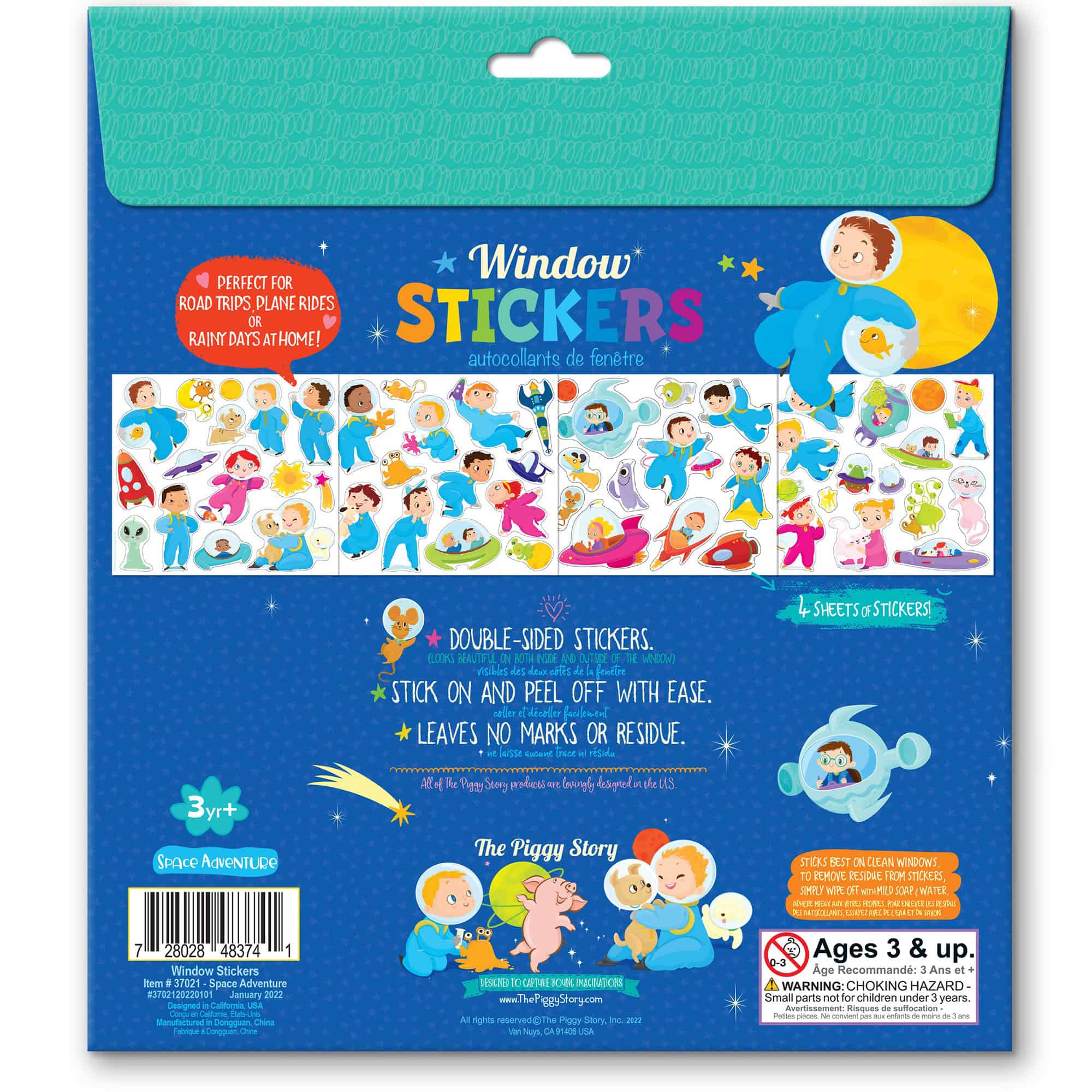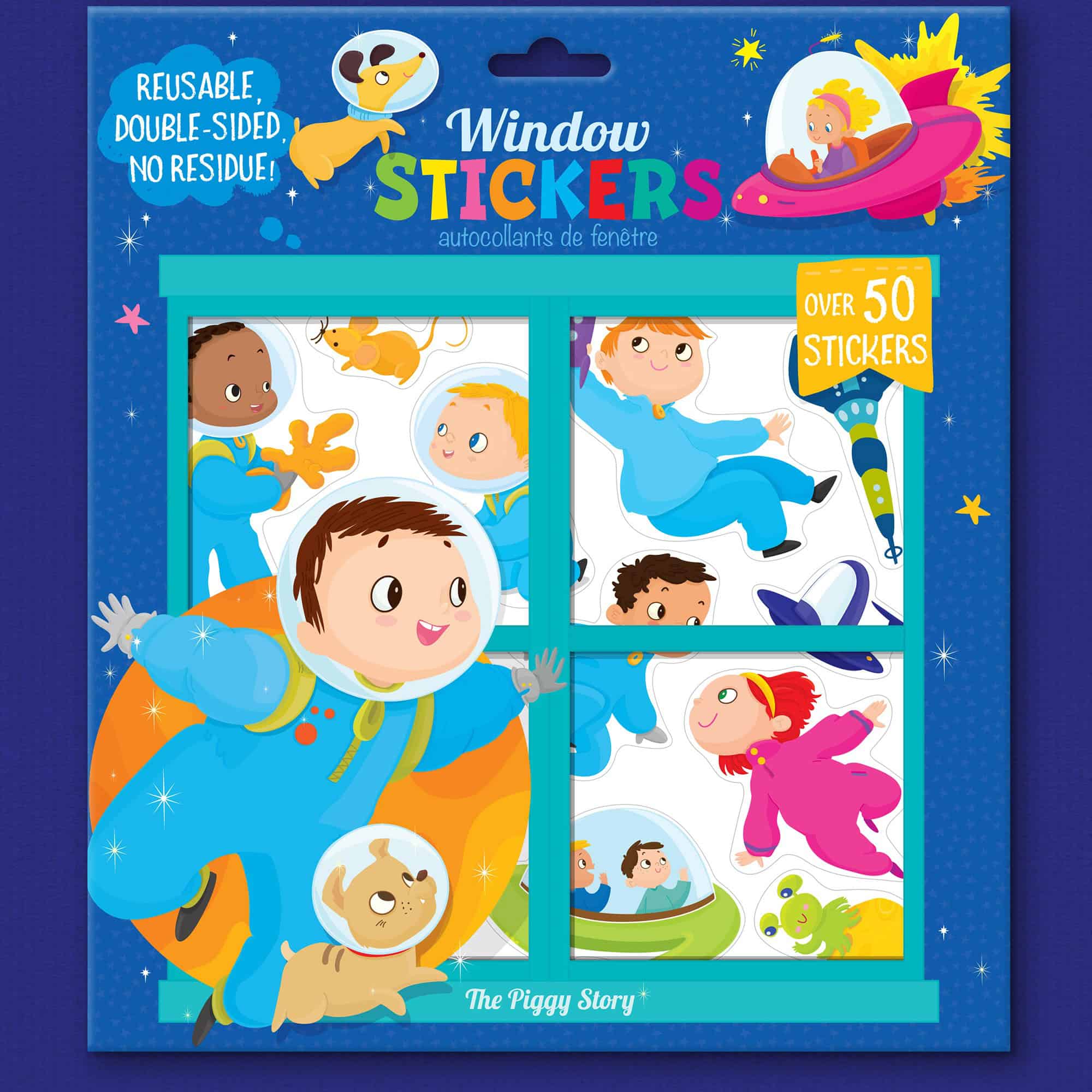 Perfect for plane rides, road trips or rainy days at home for all aspiring astronauts! Reusable, double-sided window stickers stick on and peel off with ease with no residue left behind. Decorate windows and mirrors at home or have fun in the car making scenes with the window stickers, again and again. 4 sheets of double-sided stickers included.