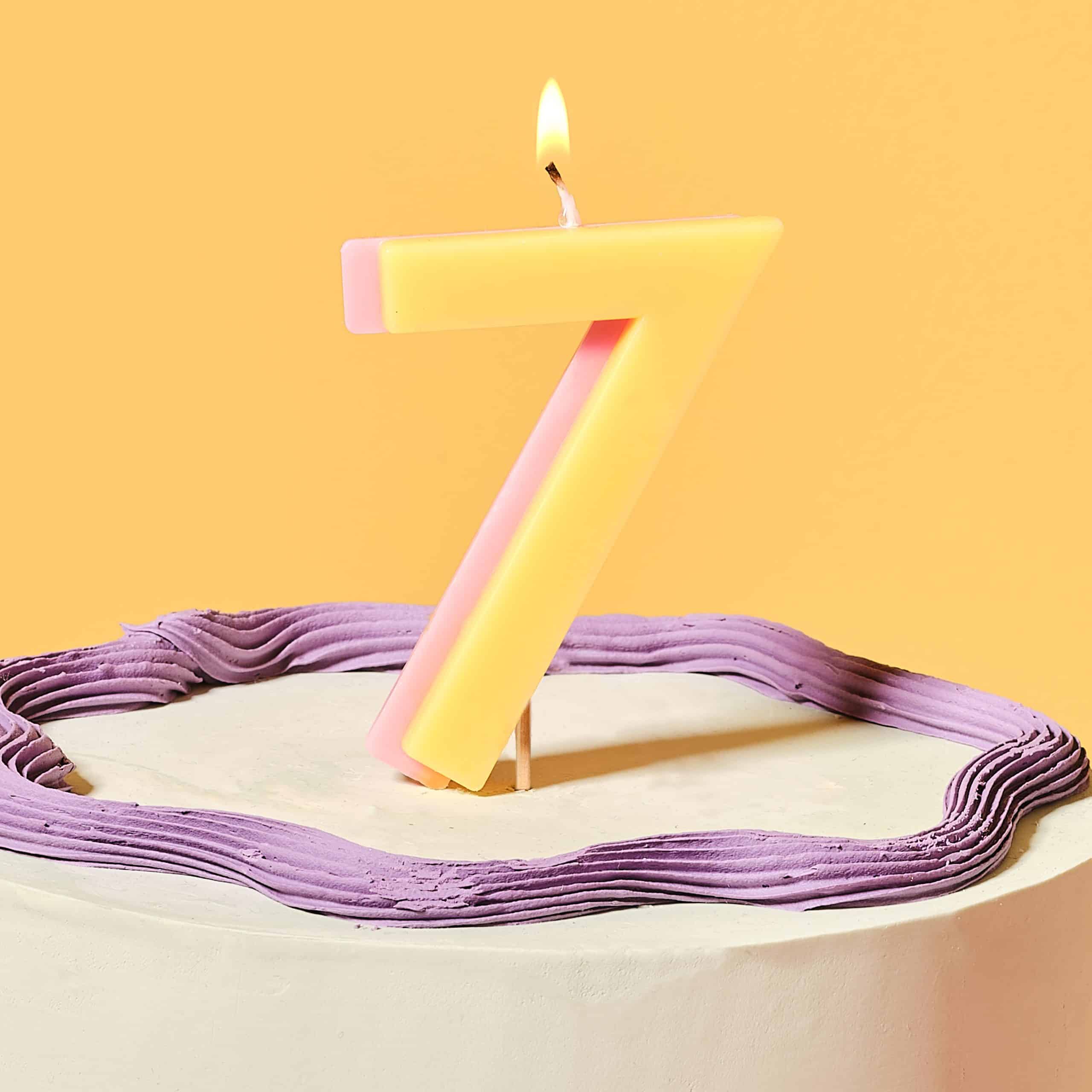 Yellow and pink number 7 candle
